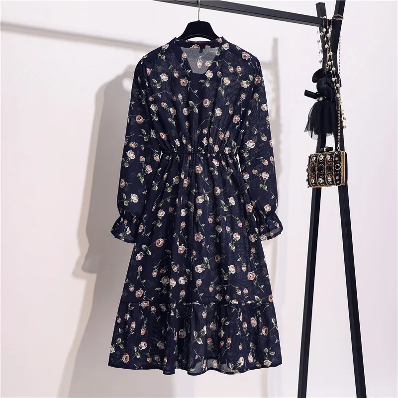 Женское шифоновое платье-рубашка, с длинным рукавом и цветочным принтом, повседневное приталенное платье в стиле ретро, для лета, 2020