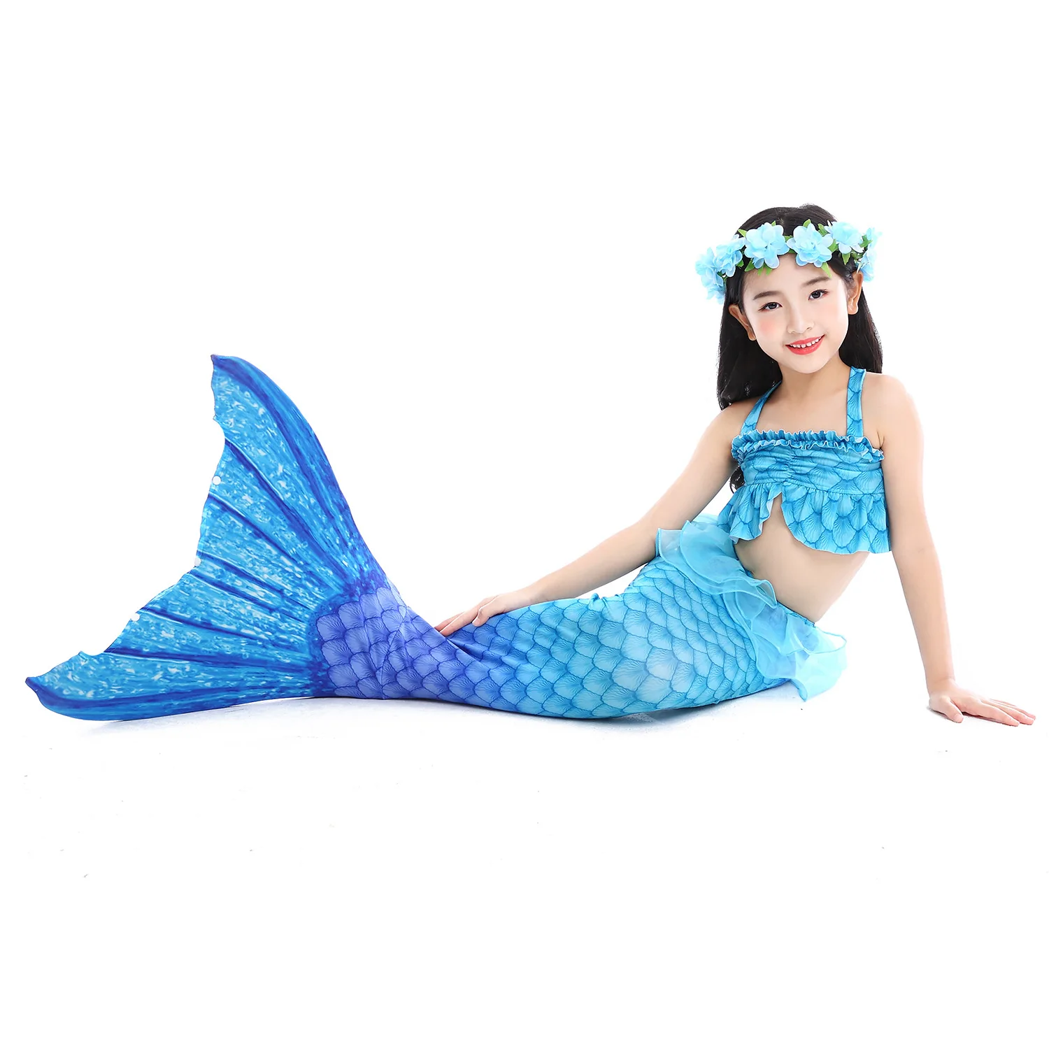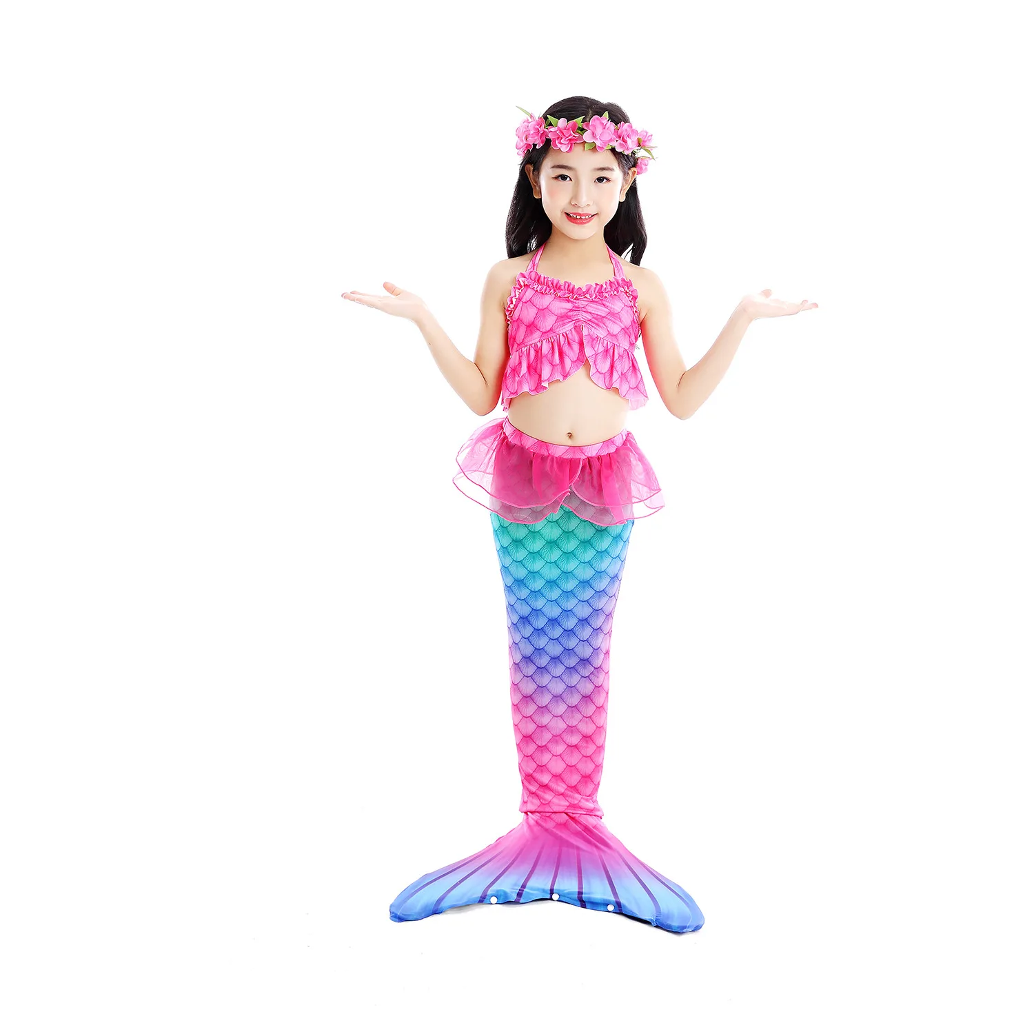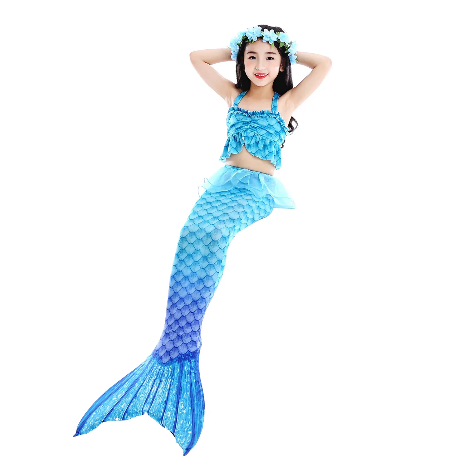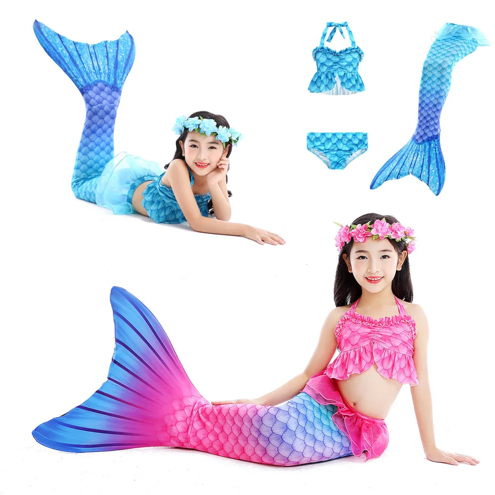 Прямая доставка, 3 шт., купальный костюм для девочек, купальник с хвостом Русалочки, красный, синий, бикини с хвостом, детские костюмы косплей, детское платье, Новинка