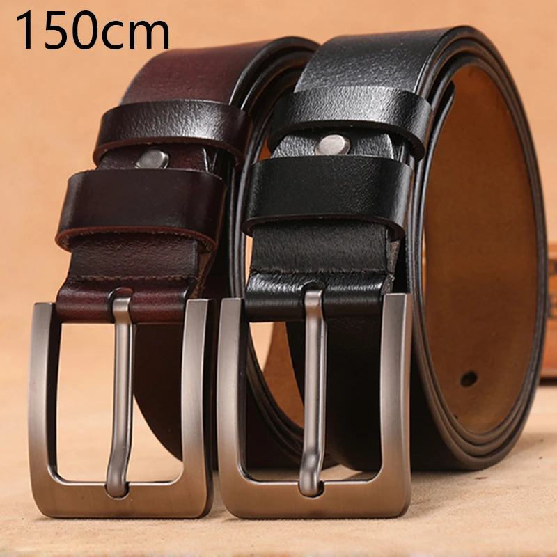 Мужской ремень из натуральной кожи, винтажный ремень с металлической пряжкой, большие размеры, 130, 140, 150, 160, 170 см
