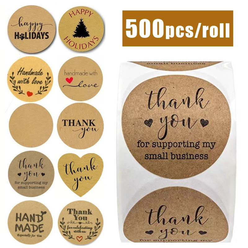 500 шт.рулон крафт-бумаги, наклейки ручной работы, спасибо, наклейки s, этикетки для печати, Круглые, для поддержки моего маленького бизнеса