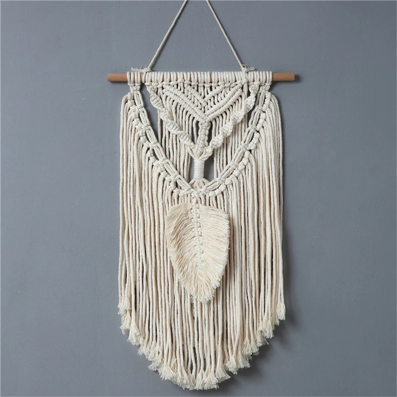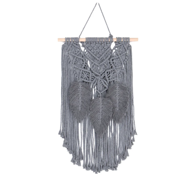 Новый серый желтый розовый гобелен из макраме настенное украшение в богемном стиле для гостиной с кисточками и листьями рукоделие Тканый гобелен