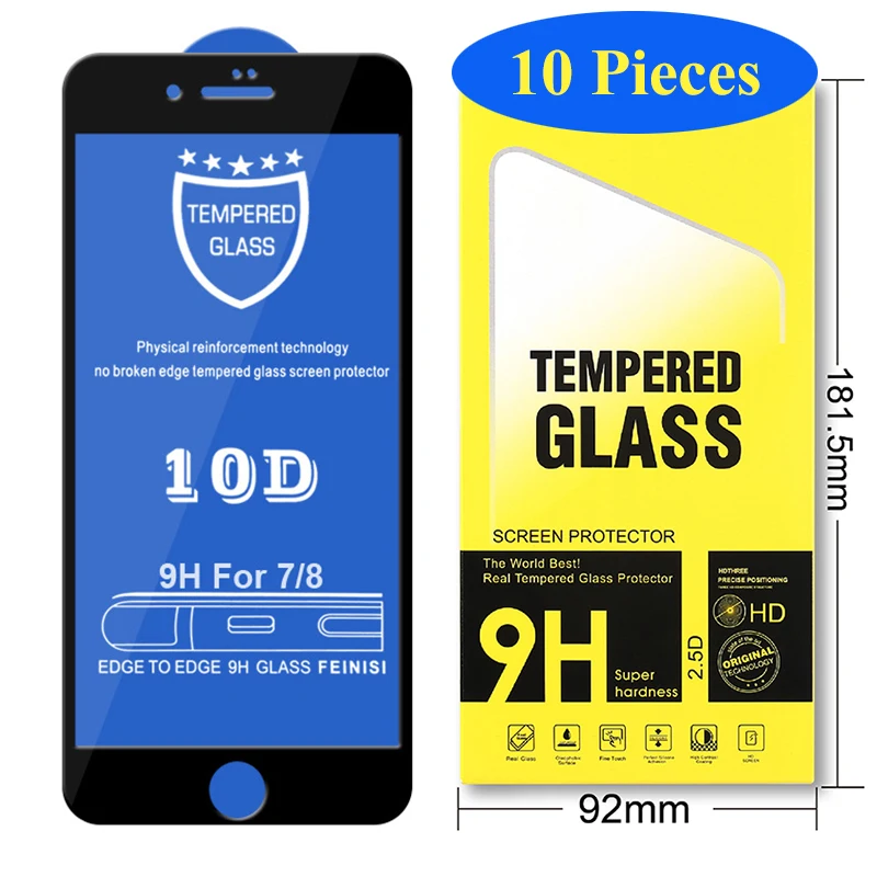 10 шт 10D закаленное стекло для iPhone 12 11 Pro Max XS Max XR X 8 ...
