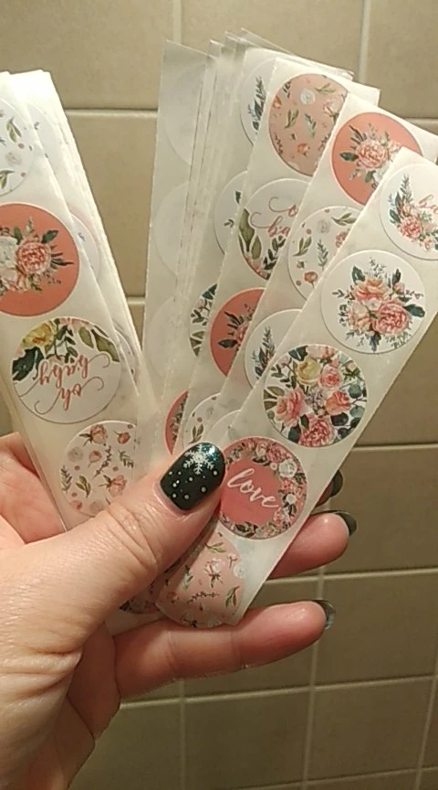 Наклейки качественные, печать хорошая. Планирую использовать их на пригласительных конвертах. Внимательней смотрите на диаметр наклейки (2 см).