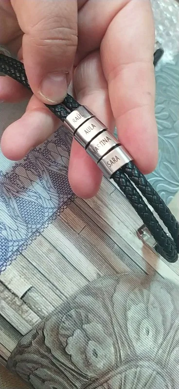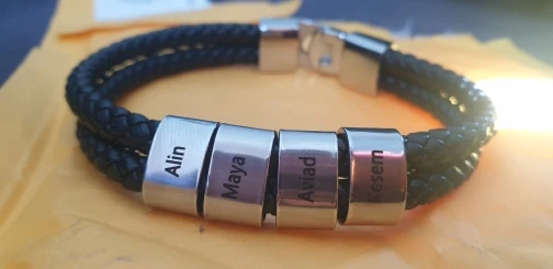 Супер красивый браслет, имена хорошо размещены в запрашиваемом порядке, не могу дождаться, чтобы предложить его моему дорогому!