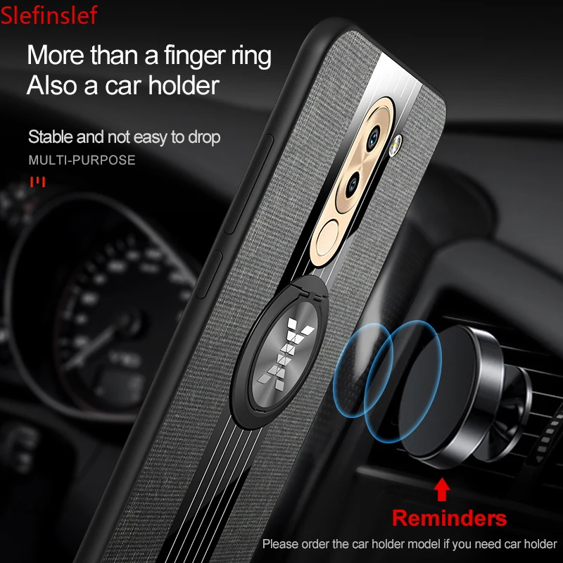 Чехол для Huawei Honor 6X, тканевый жесткий чехол-накладка, мягкая рамка, тканевый чехол для телефона Huawei Mate 9 Lite, 5,5 дюйма, магнитный держатель-кольцо