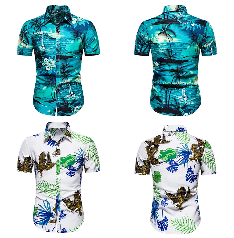 Гавайская рубашка Aoliwen мужская с коротким рукавом, брендовая свободная пляжная Повседневная рубашка с большим цветочным принтом и короткими рукавами, лето