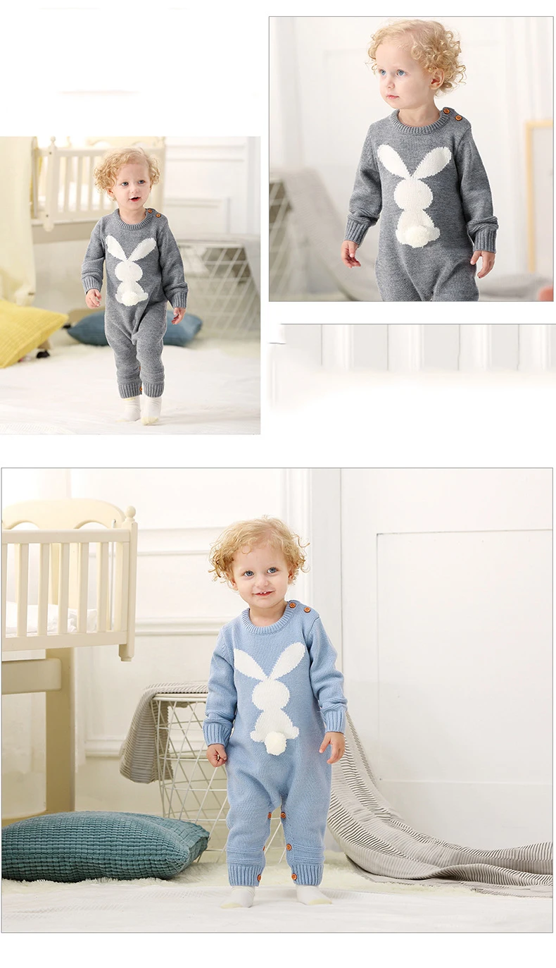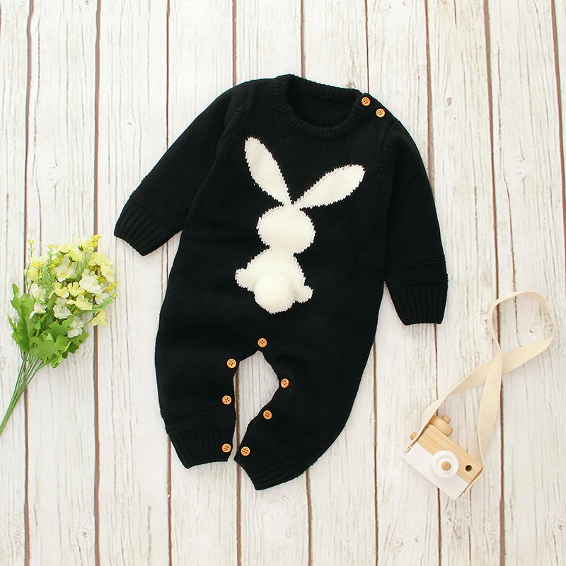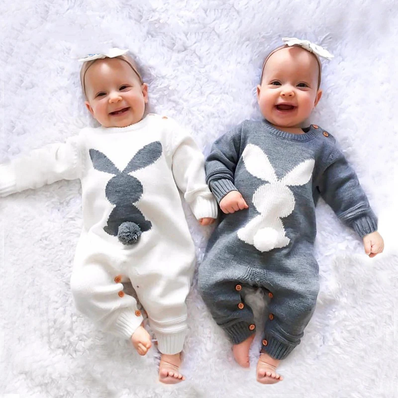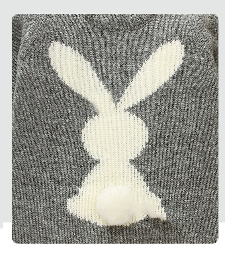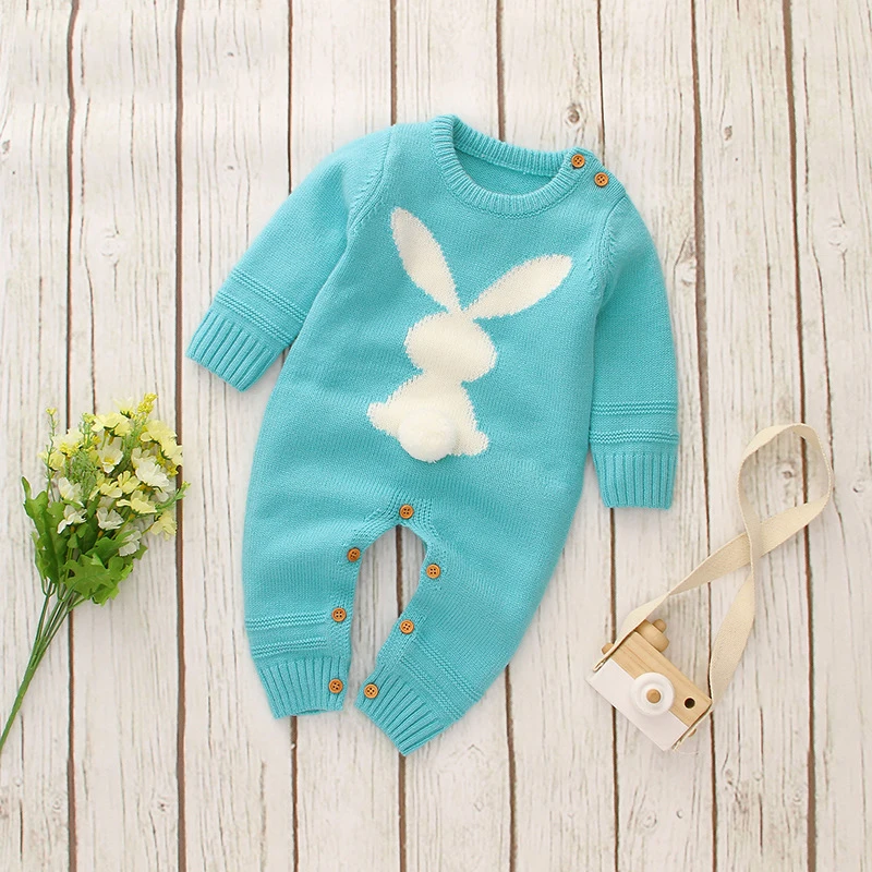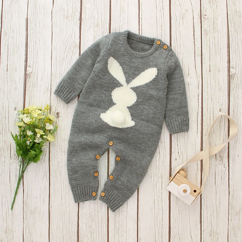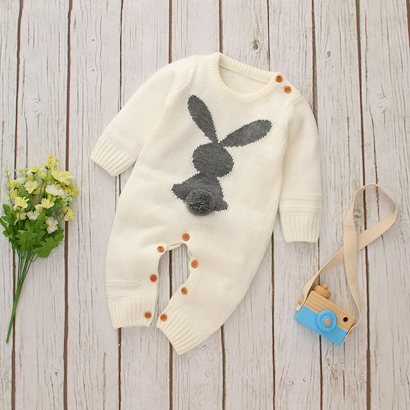 Новинка 2021, зимний детский Модный комбинезон, Вязаный комбинезон для маленьких девочек и мальчиков с милым мультяшным рисунком кролика, детская одежда для 3-24 месяцев
