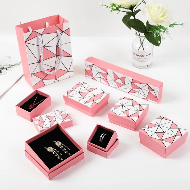 Розовая и белые шкатулки для украшений коробка из крафтовой бумаги для ожерелья, браслета, броши, серег, кольца, упаковка, Diplay, Подарочная коробка, 10 шт.
