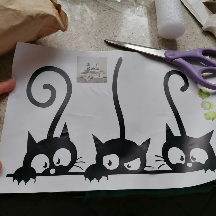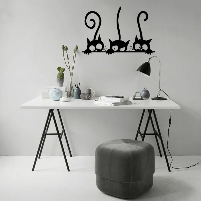 Наклейки для стен, виниловые, с изображением трех черных котов
