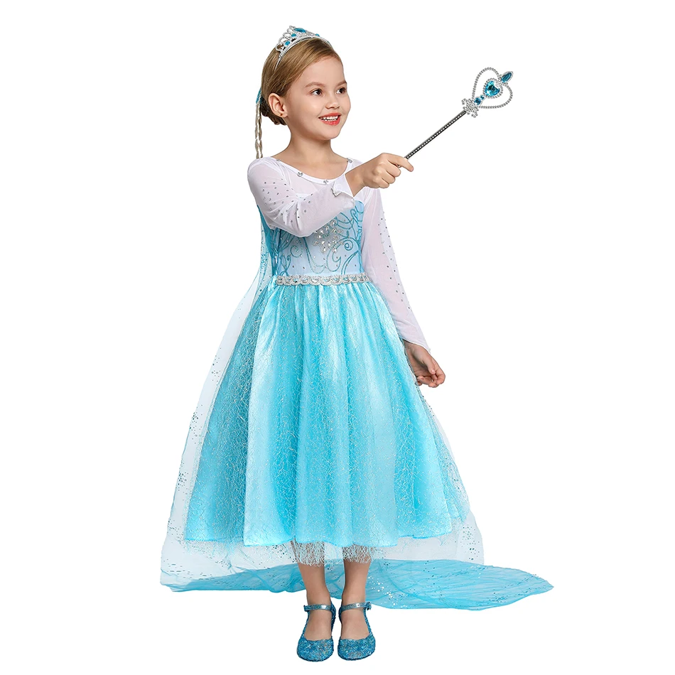 Платье принцессы Эльзы Снежной королевы детские платья с длинным рукавом из тюля для подарка на день рождения