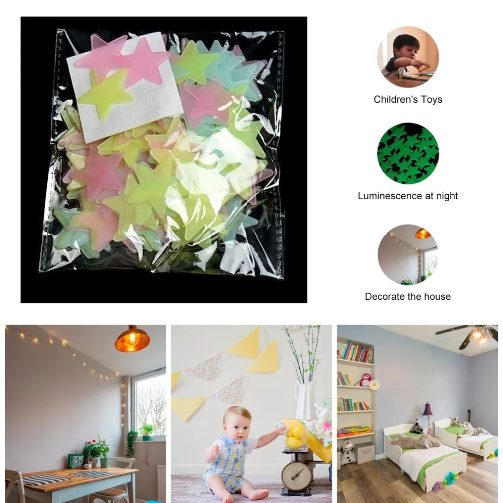 100 шт. Светящиеся Настенные Стикеры с флуоресцентной звездой, наклейки для спальни, детской комнаты, гостиной, Декорации для дома, 3D мягкий светильникОсобенности:Простота в эксплуатации: не требуется переносная пленка, просто отклеивайте и Приклеивайте до тех пор, пока поверхность гладкая, не Приклеивайте к шероховатой или неровной поверхности.Есть два разных цвета в дневное и ночное время, оригинальный цвет в дневное время, Флуоресцентный цвет в ночное время.Без каких-либо остатков, оставленных после снятия, очень легко чистить.Он может светиться ночью, чтобы создать спокойную и мягкую атмосферу благодаря вашему воображению.Светящаяся паста полностью экологически чистые пластиковые материалы.Милая Наклейка на стену для вашего дома или спальни, идеальный способ украсить вашу комнату и выразить себя.
