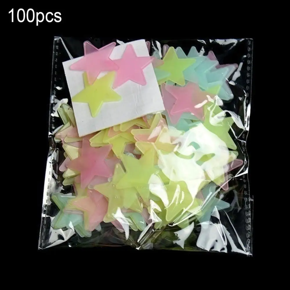 100 шт., светящиеся наклейки на стену в виде звезд