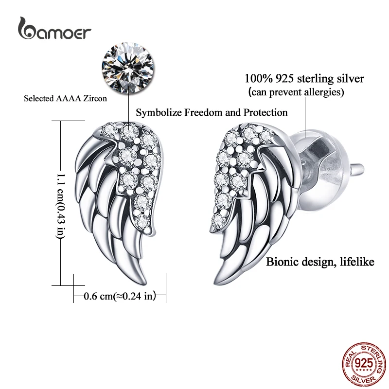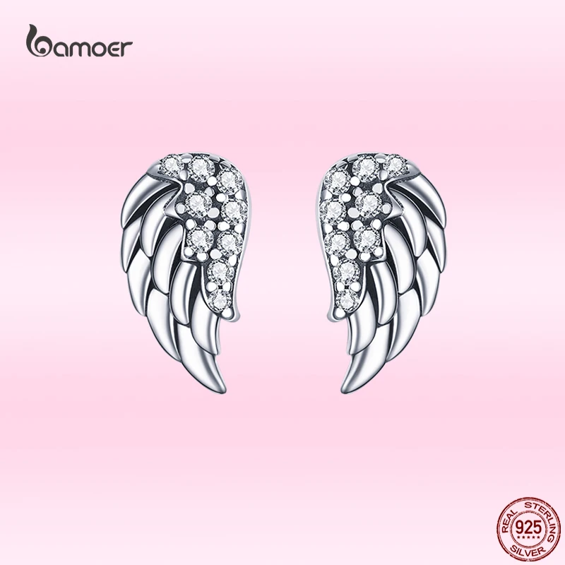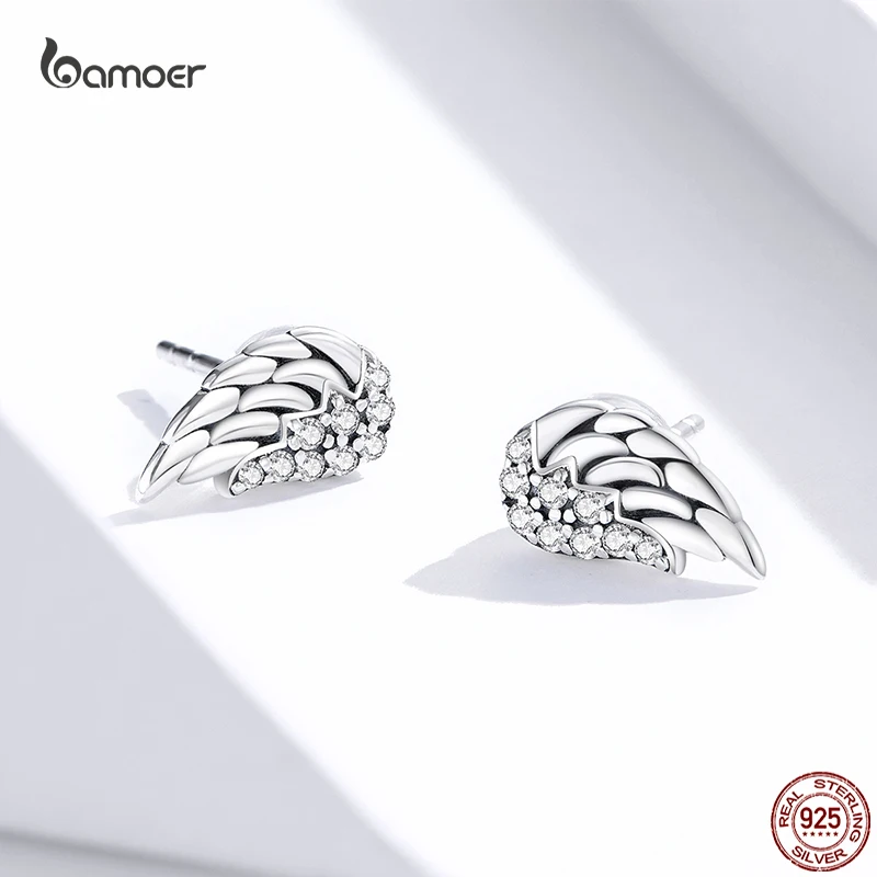 Женские серьги-гвоздики Bamoer из настоящего серебра 925 пробы с не...