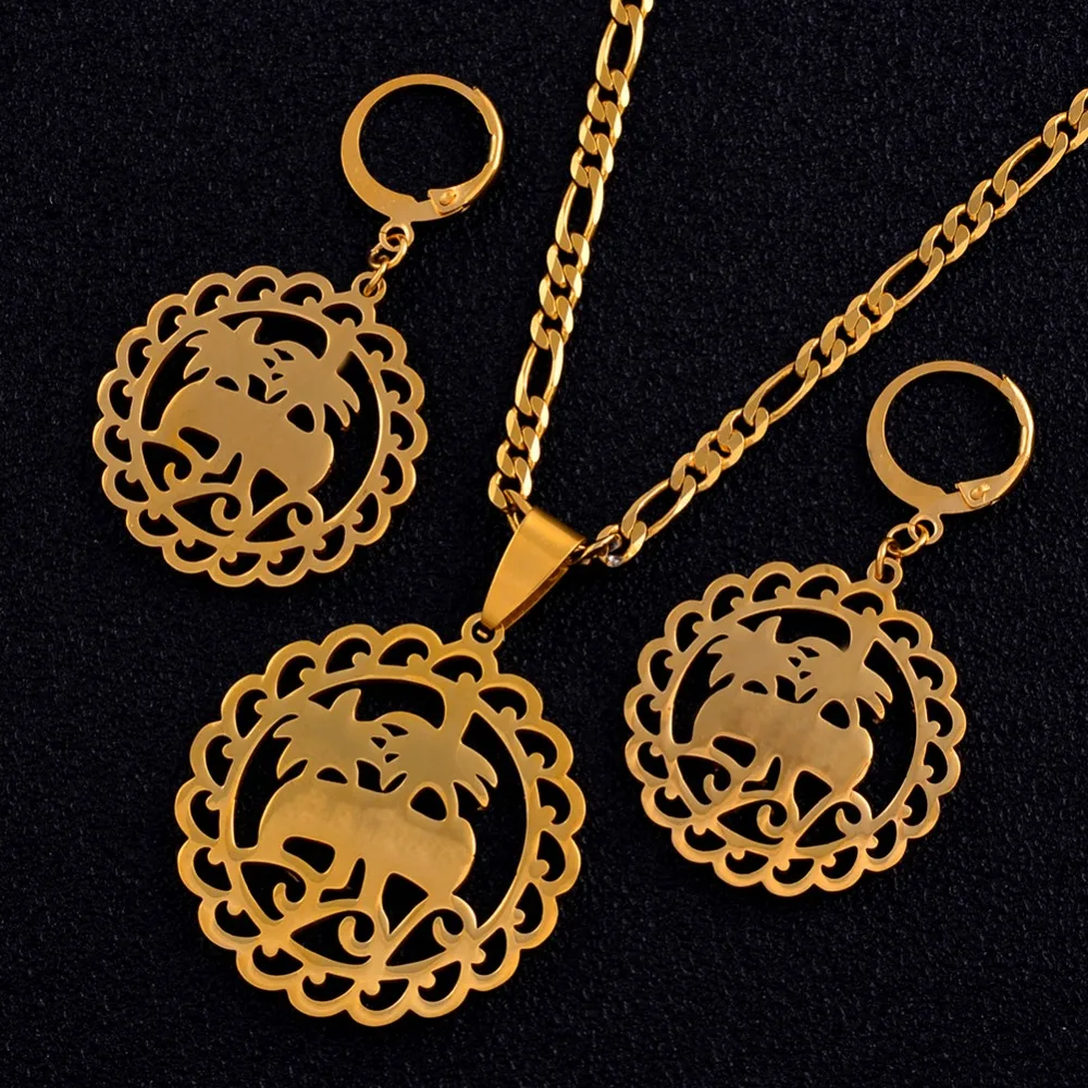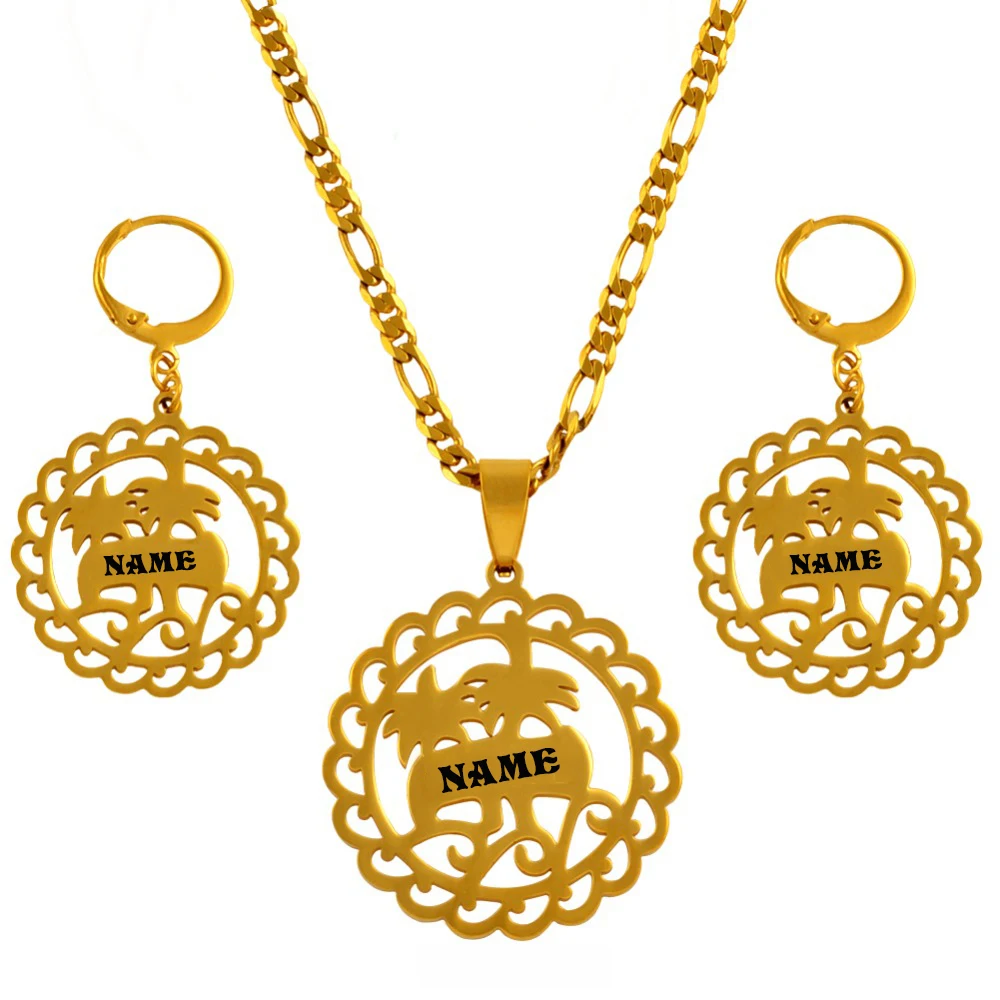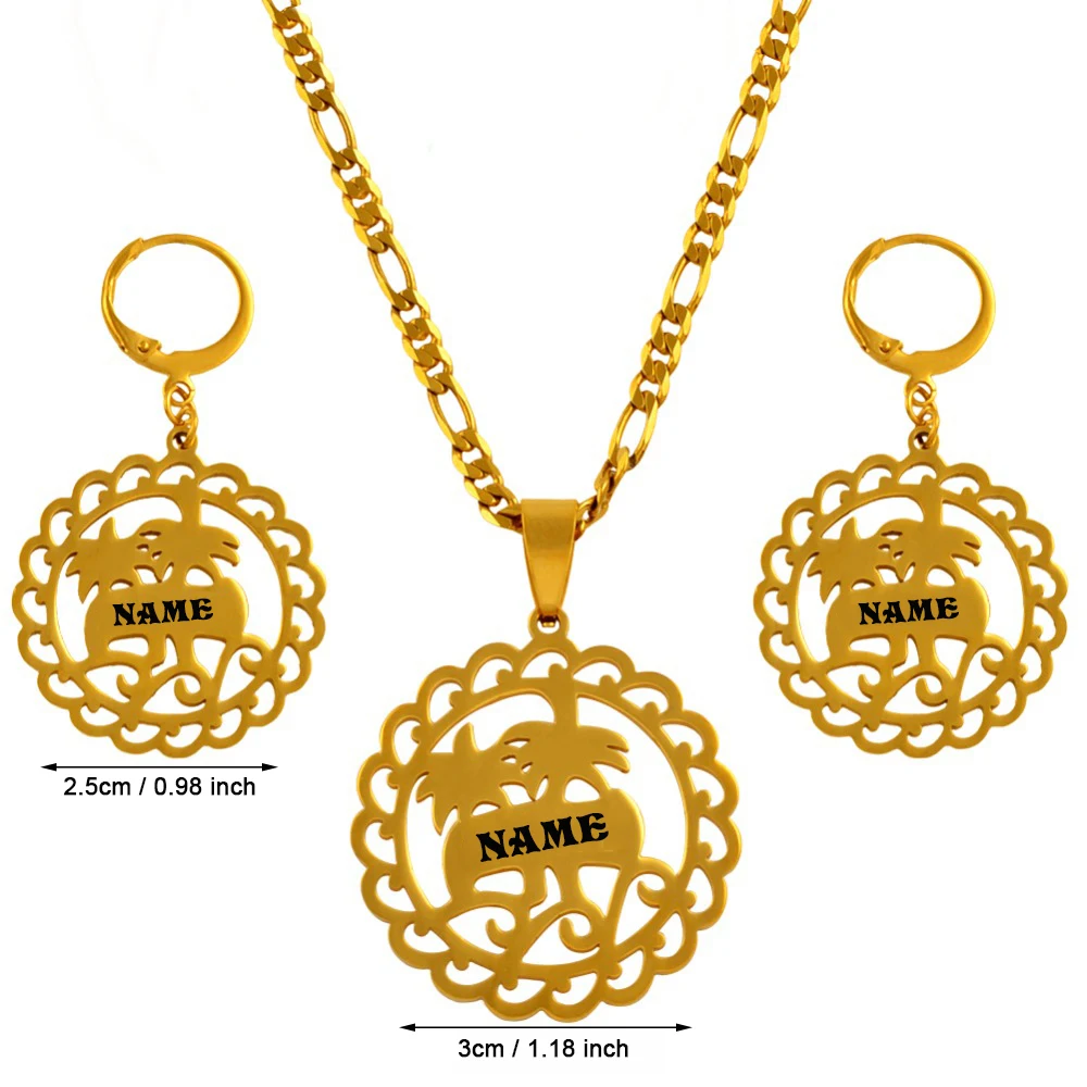 Ожерелье и серьги Anniyo с именем на заказ, гавайская Кокосовая елка, индивидуальное имя, ювелирные изделия, буквы на заказ, Гуам #057321