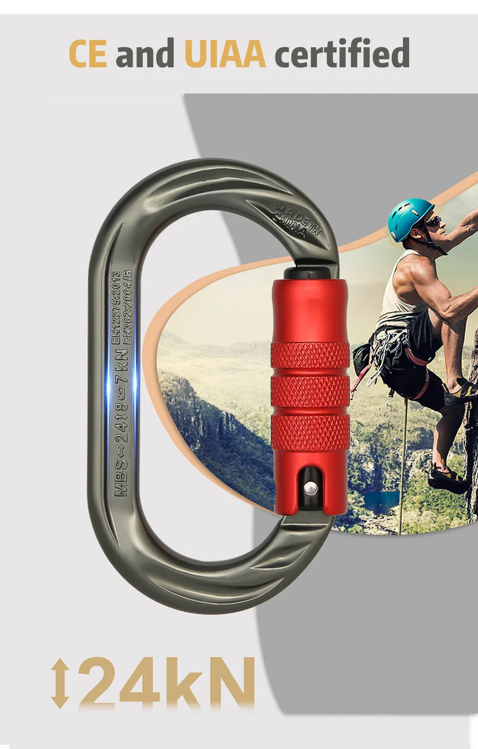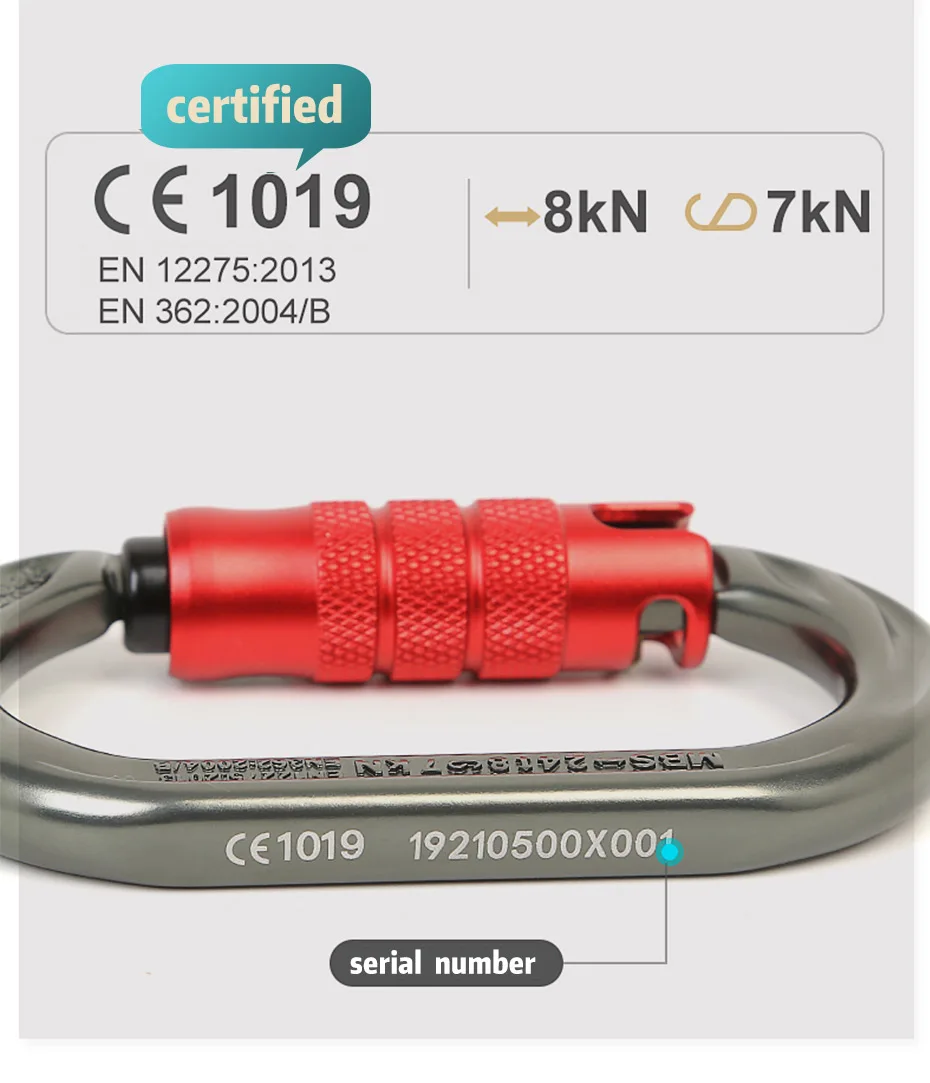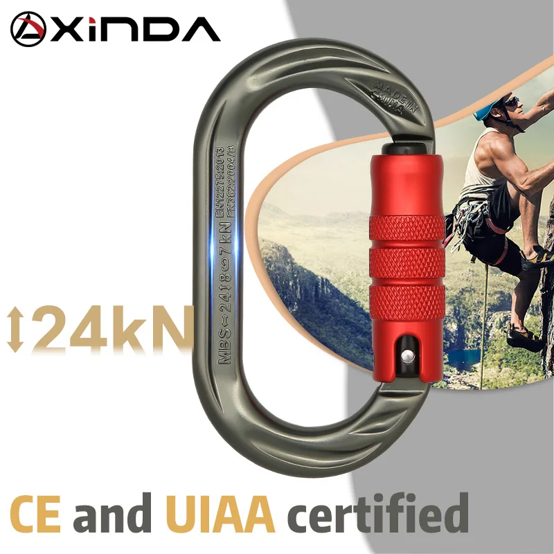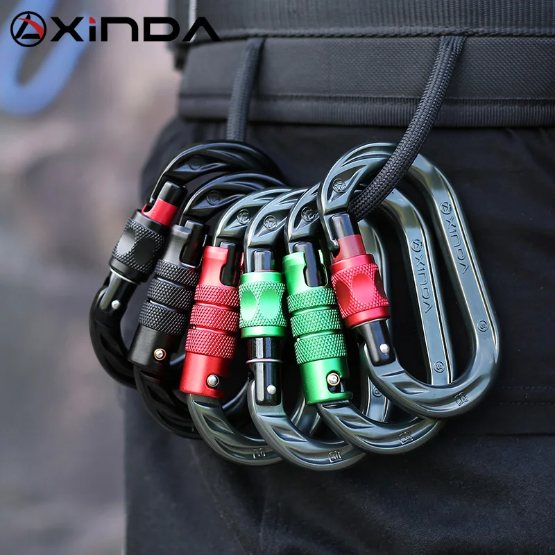 XINDA открытый o-образный карабин 24kN 7075 алюминиевый овальный крюк для скалолазания Авто запирающий Винт ворота карабин
