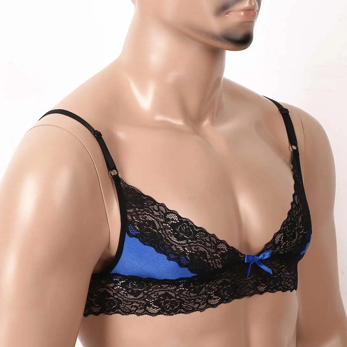 Особенности: Мужской Эротический бюстгальтер без косточек и без подкладки. Регулируемые бретельки-спагетти, Треугольные чашечки с цветочной кружевной отделкой, застежка-липучка. Хорошая эластичная ткань, мягкая и удобная в носке, сделает ваше тело полностью расслабленным. Идеально подходит для специальной ночи, Дня Святого Валентина, подарков для медового месяца, свадебной ночи, свадебных подарков. Пожалуйста, проверьте размер перед покупкой, ручная/машинная стирка в холодной воде.