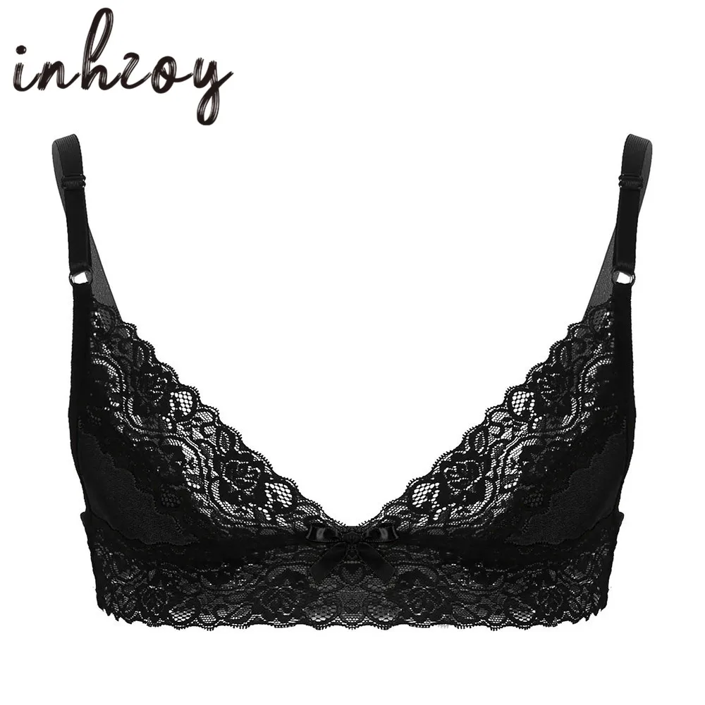 Мужской Эротический бюстгальтер, Crossdressing, нижнее белье Sissy, регулируемые бретельки, цветочные кружева, без косточек, бралет без подкладки, мужские сексуальные топы