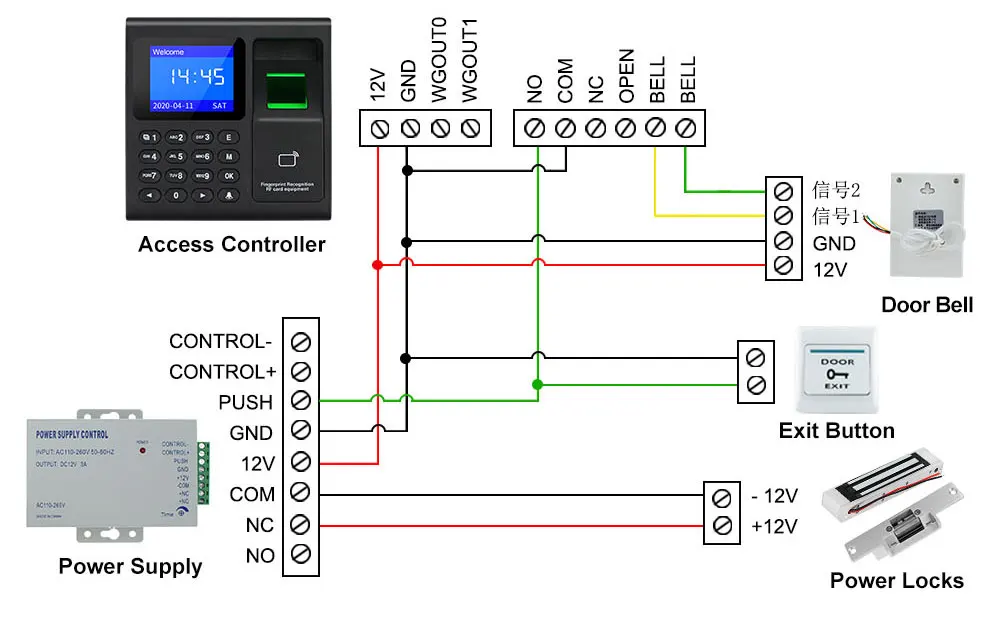 Примечание: блок питания, замки, кнопка выхода, дверной звонок, показанный на картинке ниже, посылка входят. Если они вам нужны, пожалуйста, купите их дополнительно.