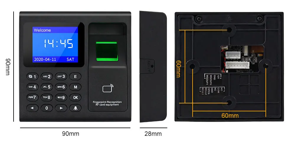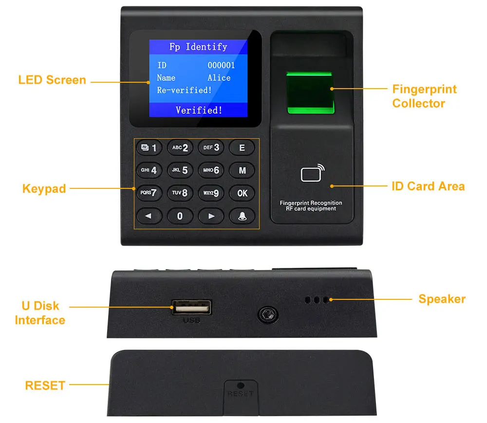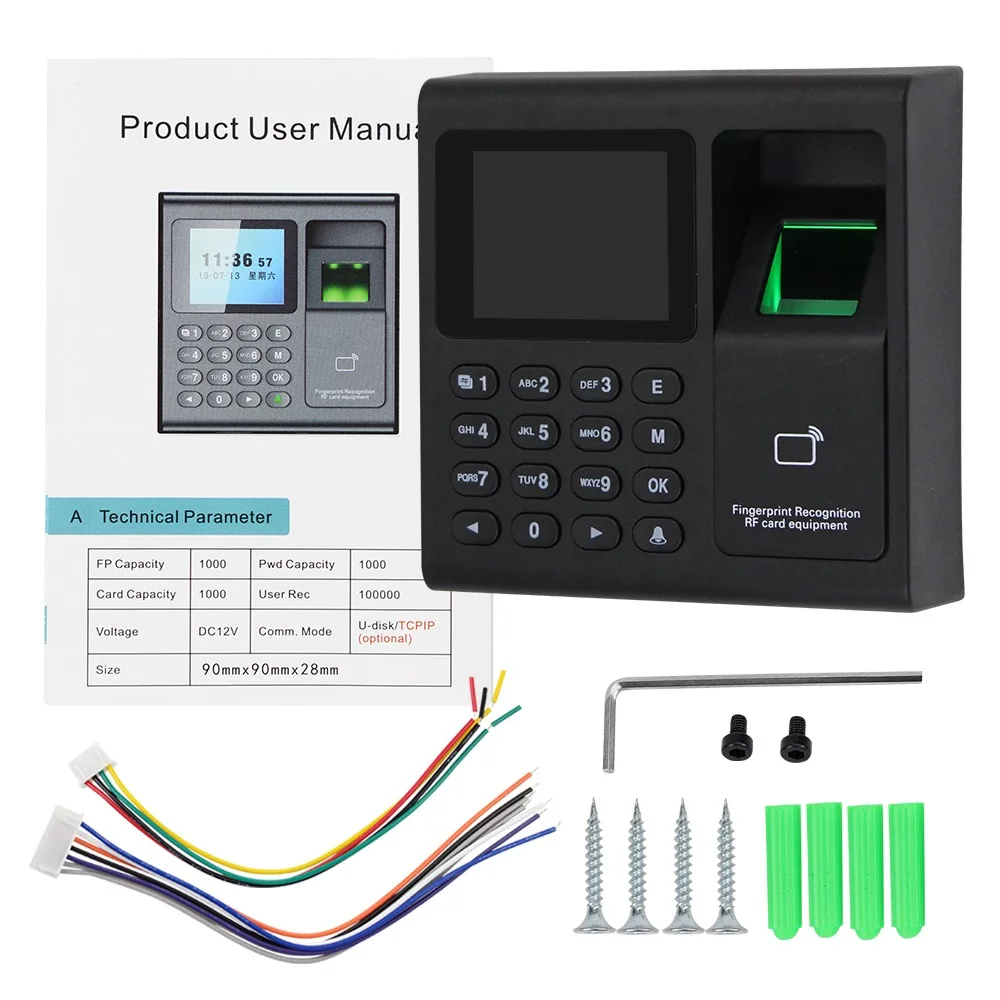Устройство контроля доступа по отпечатку пальца-это простое и простое в использовании устройство контроля доступа по отпечатку пальца, которое можно установить в чувствительных местах, требующих разрешения на вход, И творчески сочетает в себе высокобезопасное Распознавание отпечатков пальцев с улучшенным управлением доступом для достижения доступа. Высокая безопасность управления. С этим регистратором времени отпечатков пальцев вы можете попросить своих сотрудников зарегистрироваться с помощью отпечатков пальцев, RFID-карты и пароля. Поддержка 1000 емкости пользователя, 1000 отпечатков пальцев, 1000 паролей, 1000 карт RFID, 100000 записей. Между тем у него есть способы связи через USB, поддержка загрузки данных через U-disk.