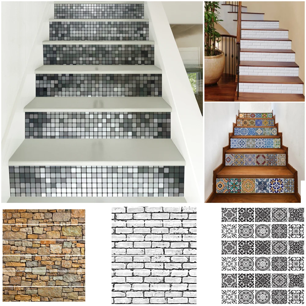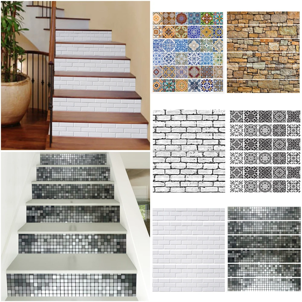 6 шт./набор, водонепроницаемые самоклеющиеся 3D наклейки для лестницы, ПВХ мозаичные наклейки, кирпичные обои, настенные художественные украшения, украшение для домашней лестницы