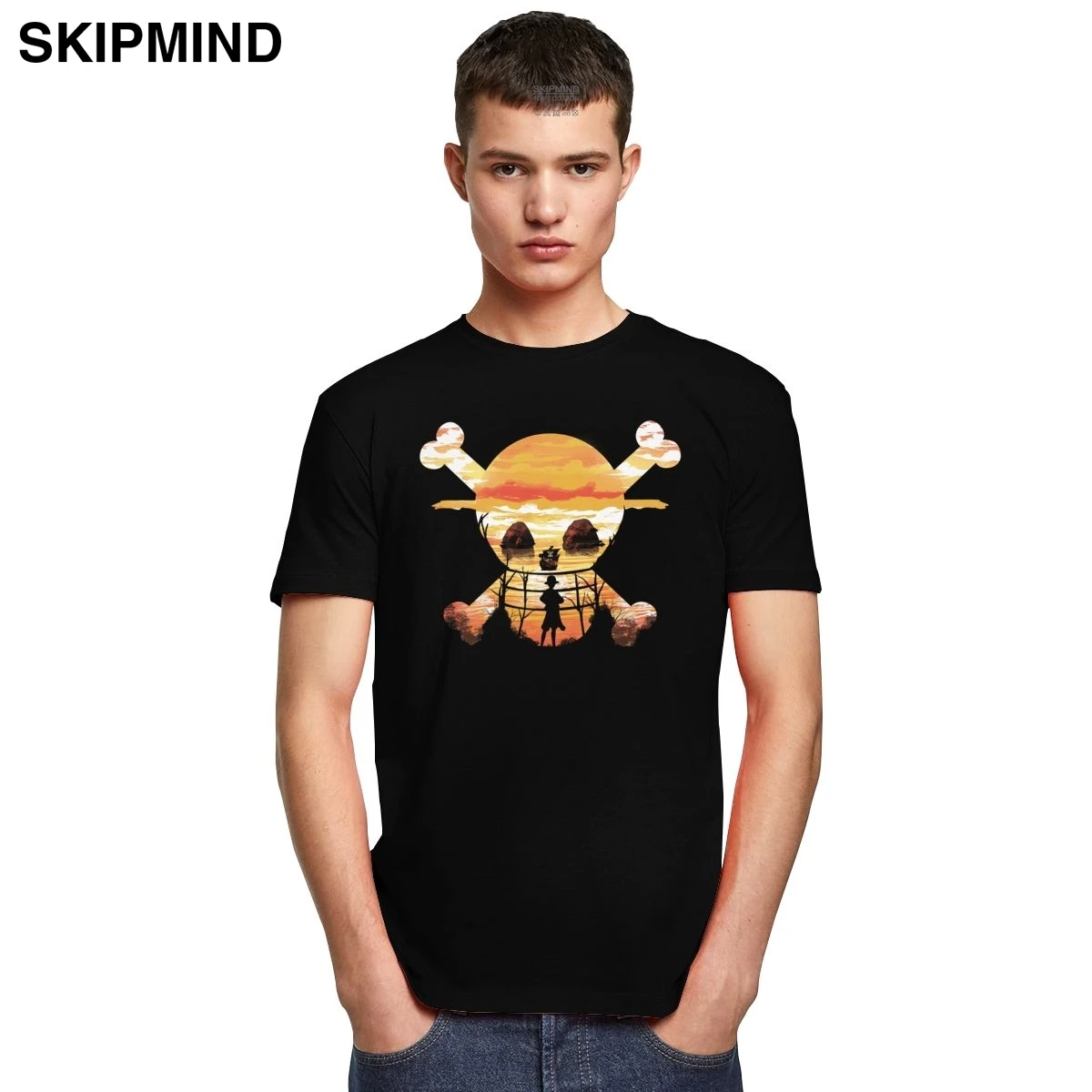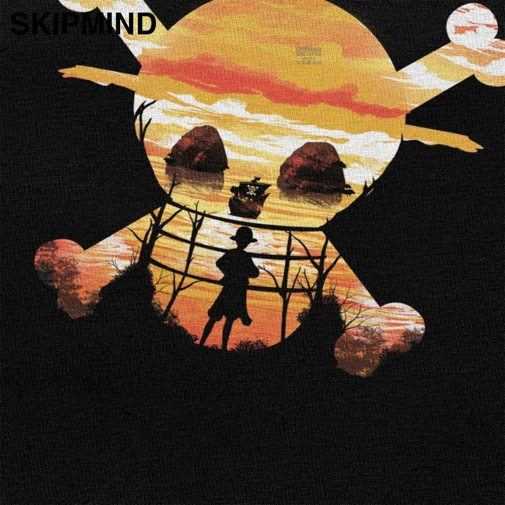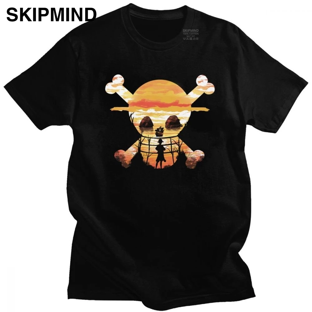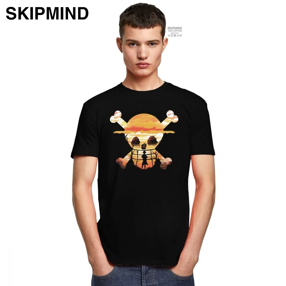 Модная цельная футболка для мужчин, мягкая хлопковая Футболка с рисунком черепа, круглый вырез, короткий рукав, футболка с принтом обезьяны Луффи, футболка с аниме фанатами, подарок