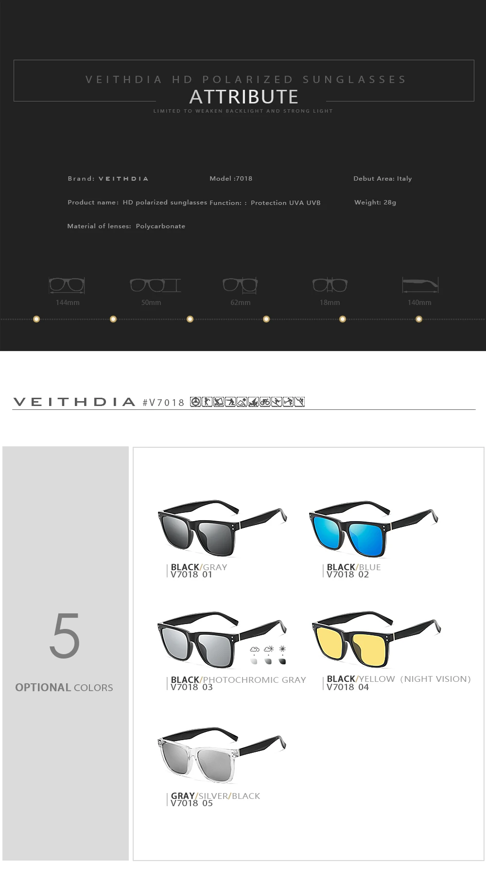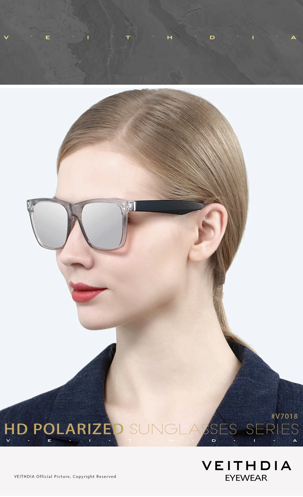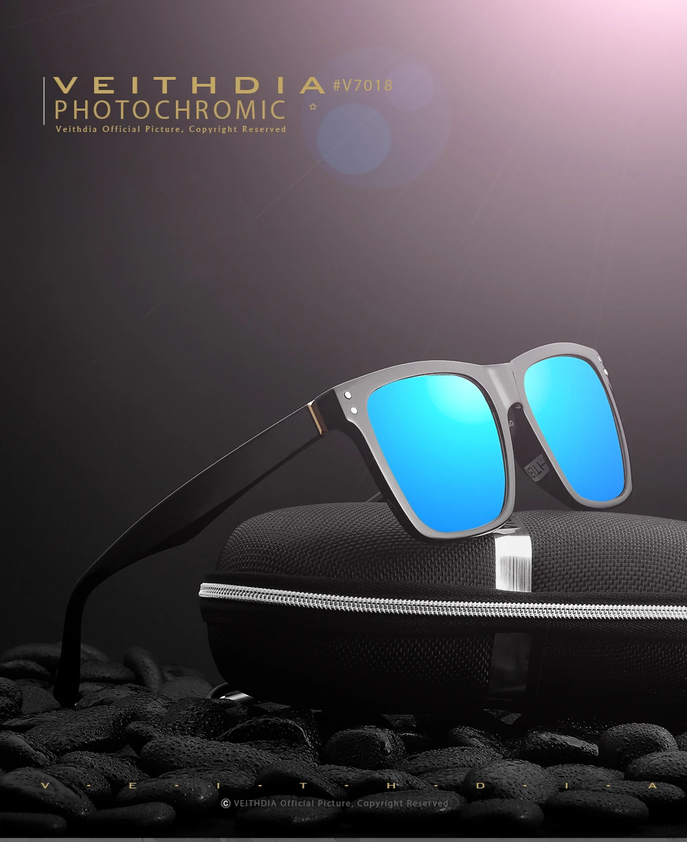 VEITHDIA Модные солнцезащитные очки для женщин и мужчин унисекс солнцезащитные очки для улицы фотохромные поляризованные Квадратные Зеркальные очки для женщин V7018
