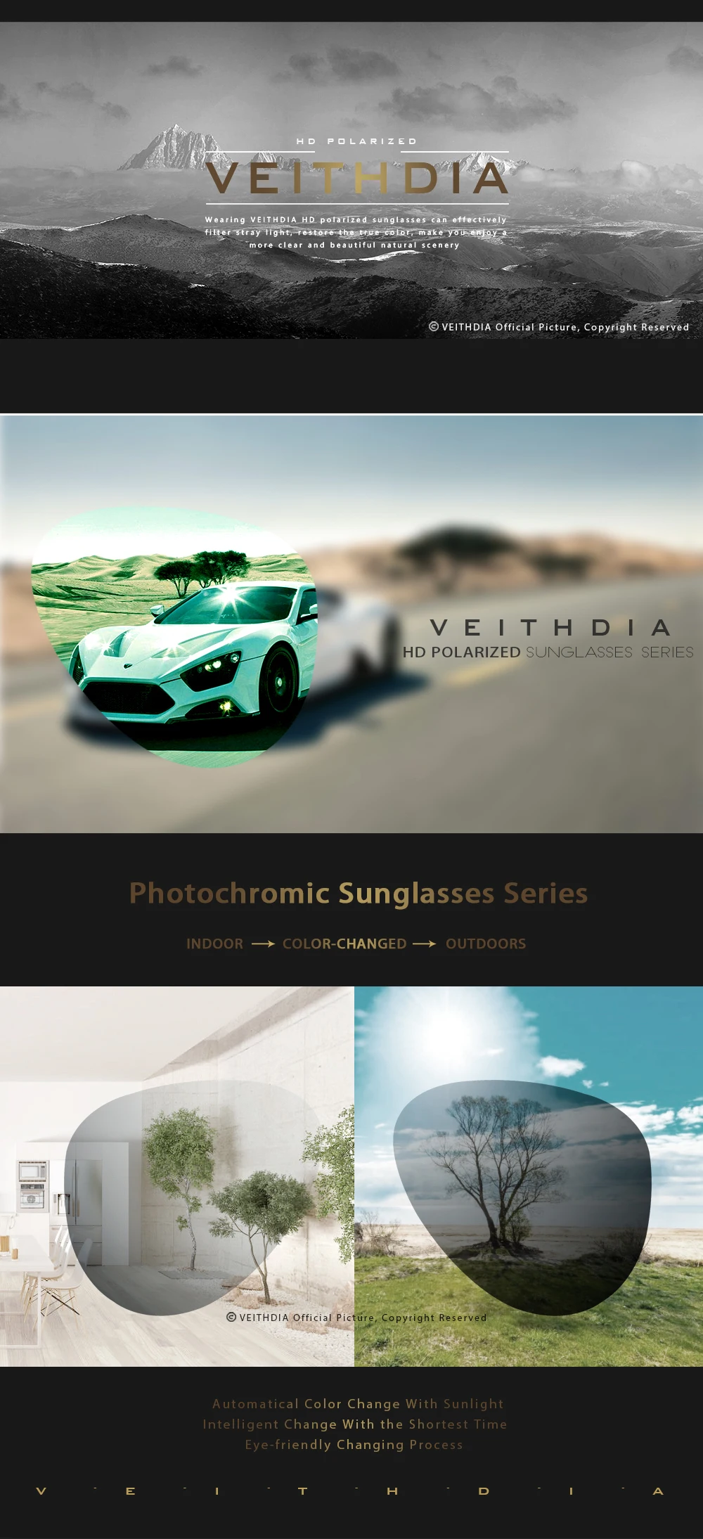 Солнцезащитные очки унисекс VEITHDIA, фотохромные поляризационные, ...