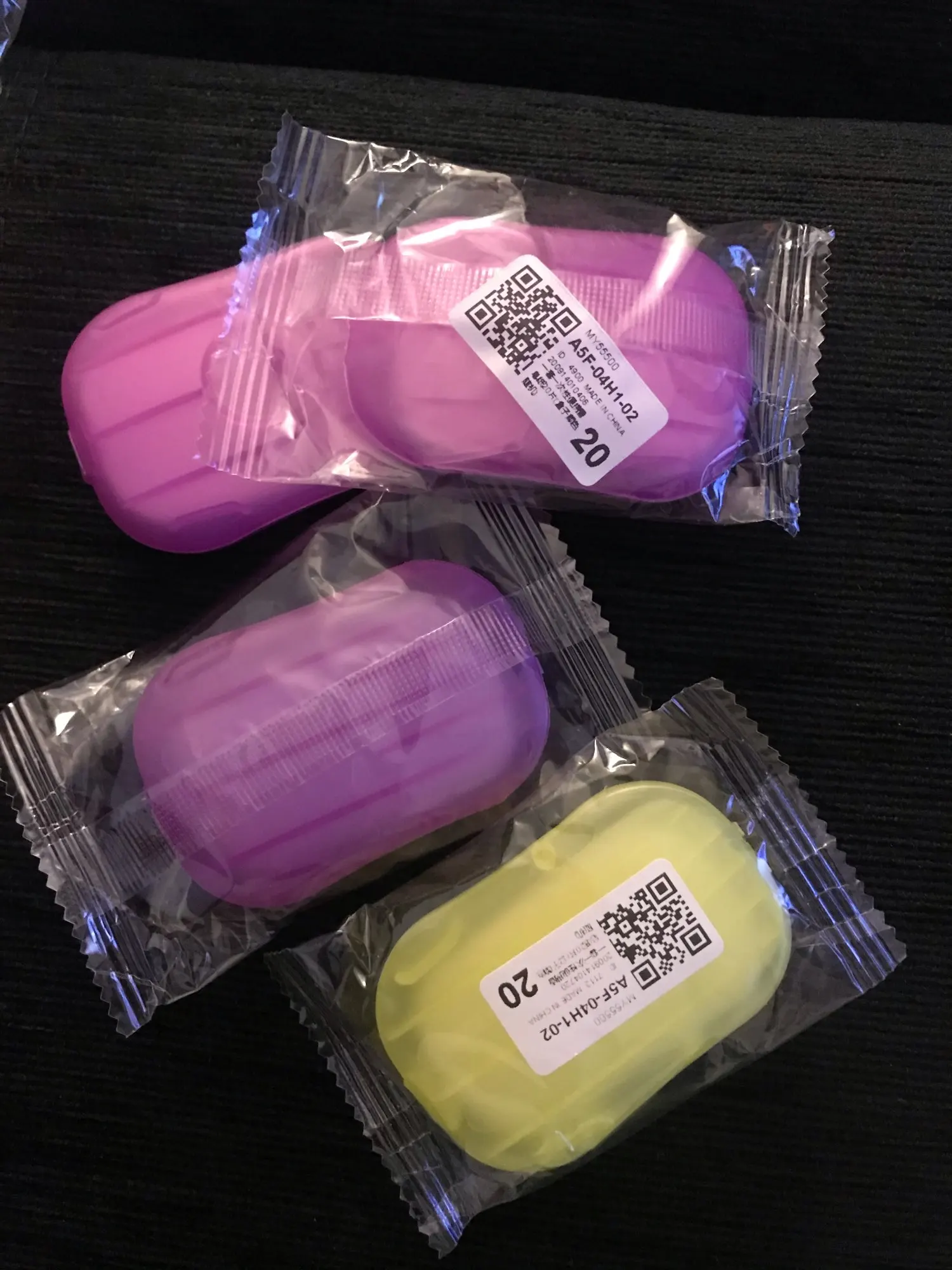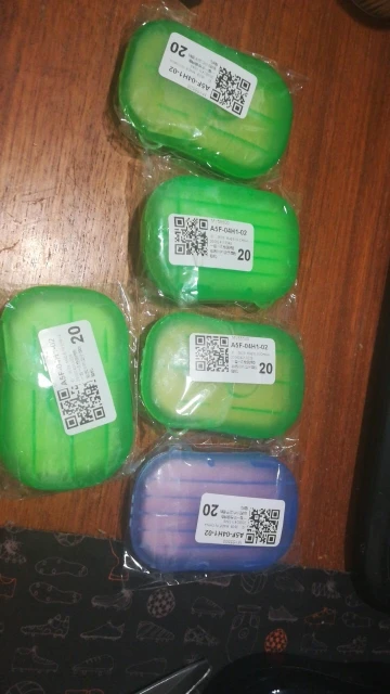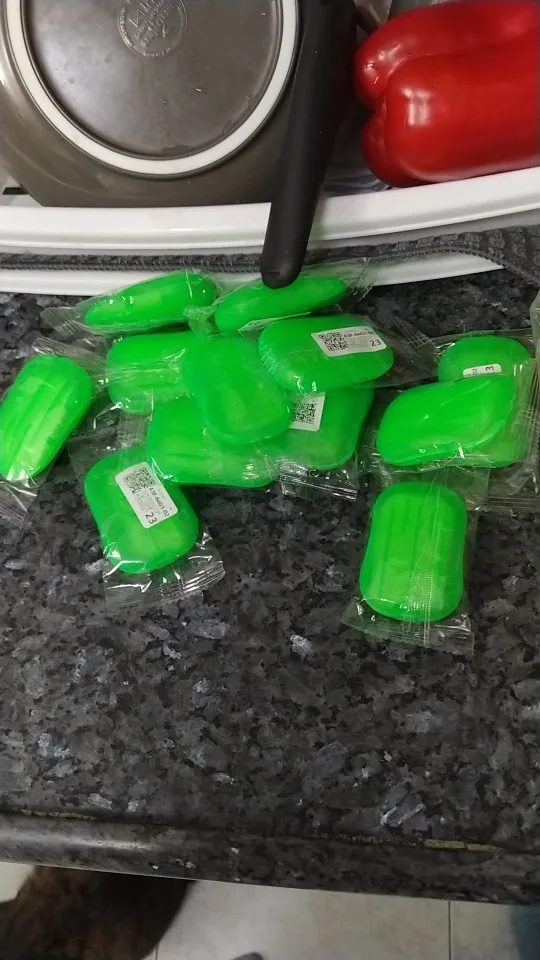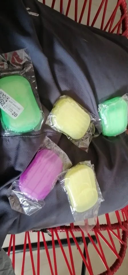 Заказанный 17 сентября-получил посылку 12 октября. Есть 3 зеленых, желтый и розовый. Приятный запах. Пробовал их, они делают пену по мере необходимости. Я думаю, что они хороши для использования на открытом воздухе, и вокруг нет мыла. Покупал бы снова.