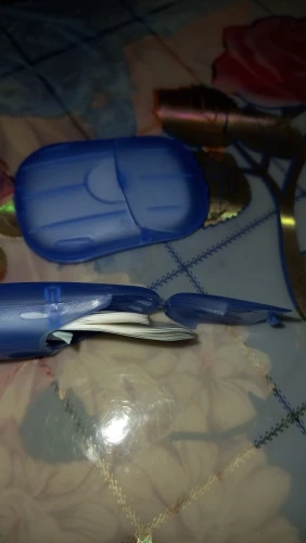 мыло в зелёном футляре. запах противный. не отслеживается, шло долго.
