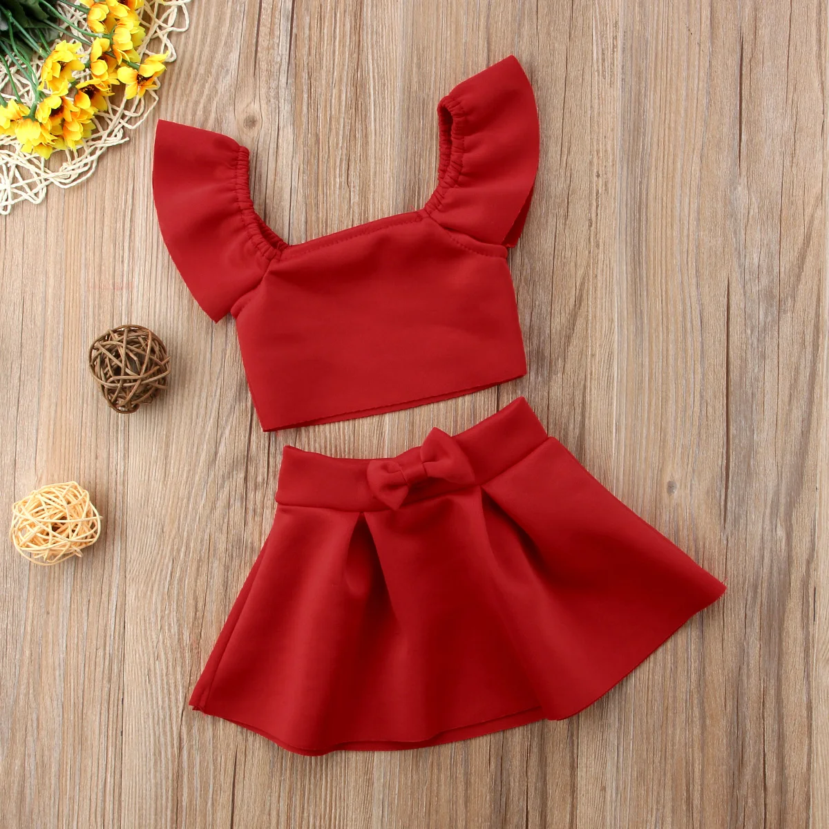 Одежда для девочек 2 шт., укороченный топ с открытыми плечами и юбка для новорожденных девочек, комплект одежды 2020
