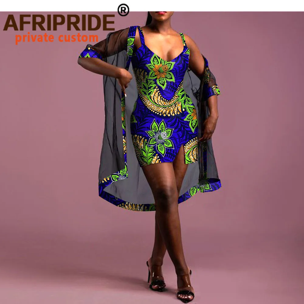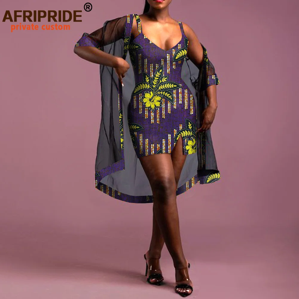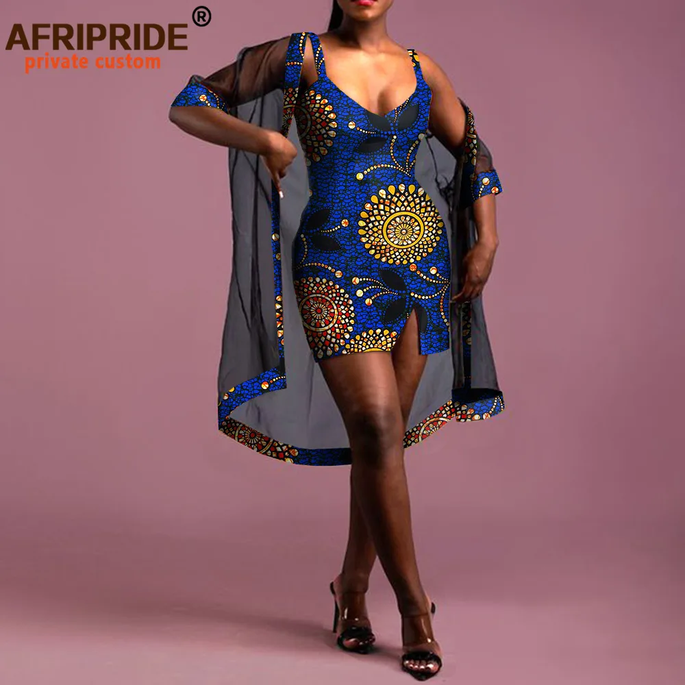 Женское мини-платье и фата, комплект из 2 предметов, с принтом Дашики, с V-образным вырезом, без рукавов, A2026002