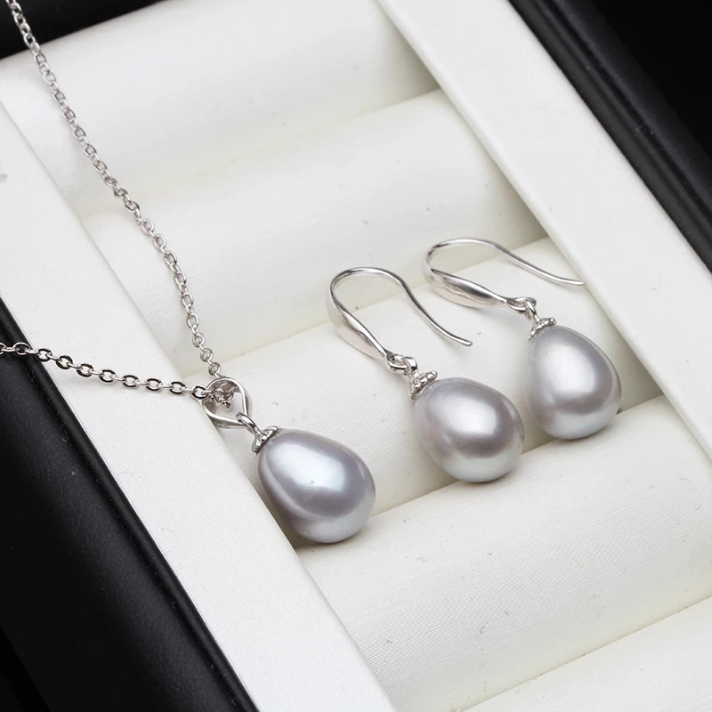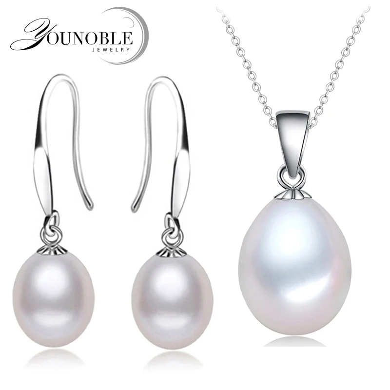 Свадебный комплект из натурального пресноводного жемчуга для женщин, модное ожерелье и серьги из белого жемчуга, ювелирные изделия, Подарок на годовщину