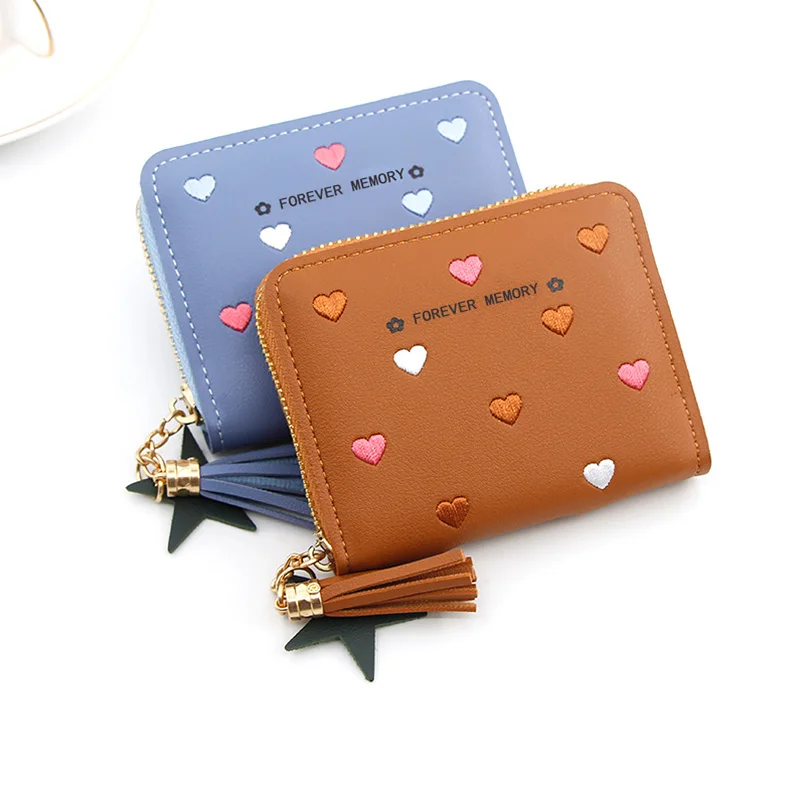 Женский мини кошелек карамельный цвет милый кошелек карта Упаковка кошельки в форме сердца вышивка женский короткий кошелек многофункциональный