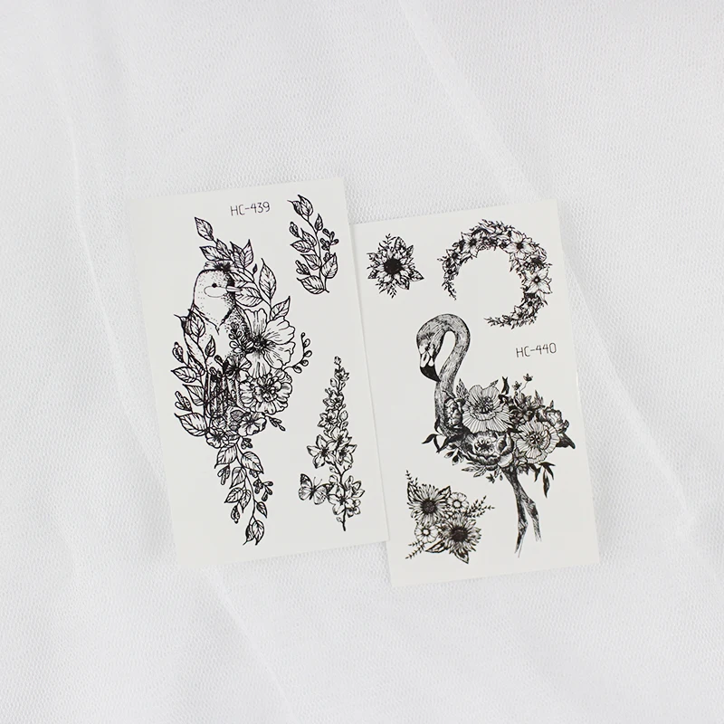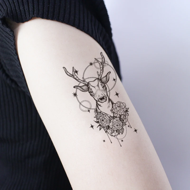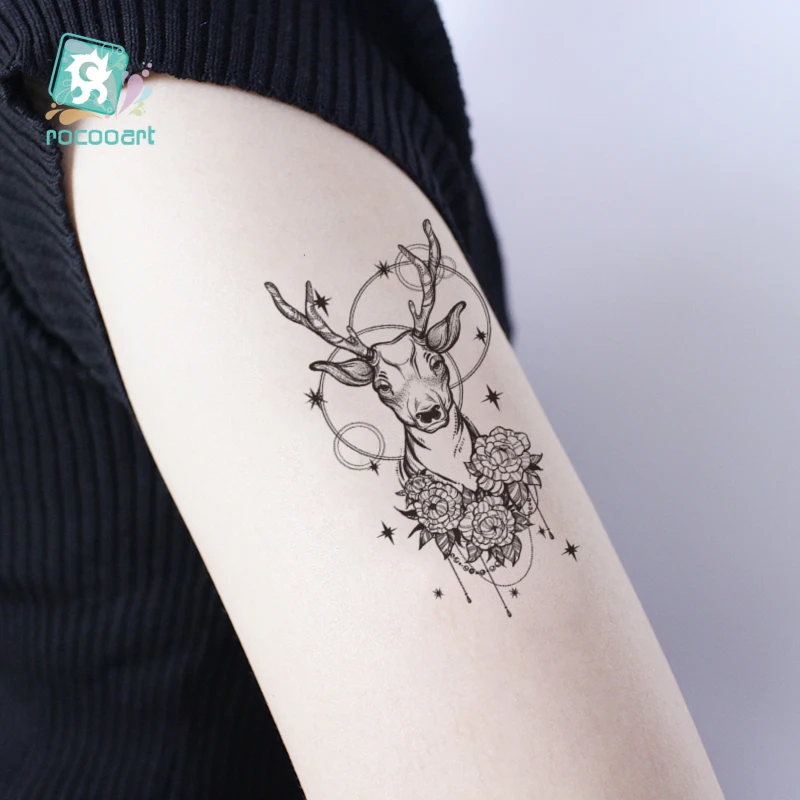Водная переводная татуировка, минималистичный черный и белый цветок и татуировка с изображением оленя, боди-арт, водонепроницаемые временшивые татуировки для мужчин и женщин