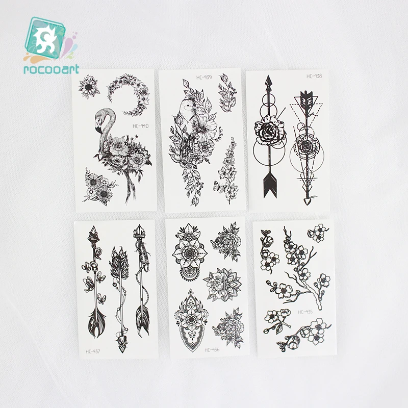 Водостойкая Татуировка Rocooart, черные натуральные цветы, 10,5*6 см