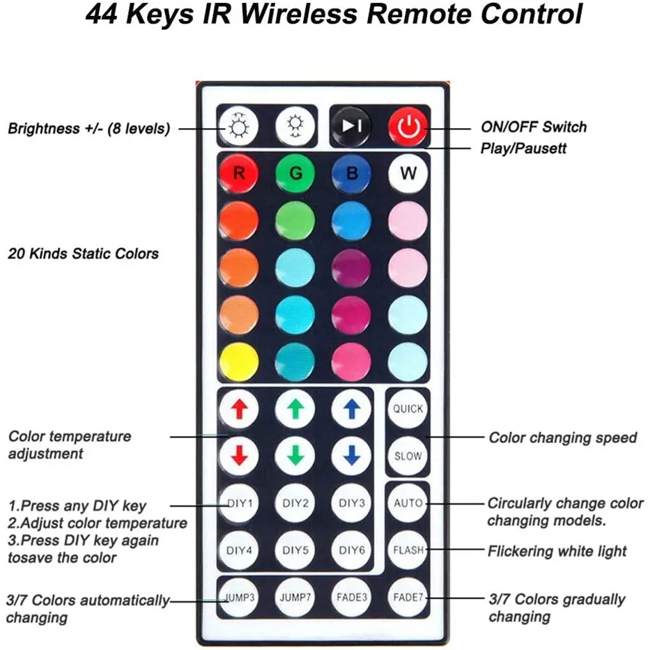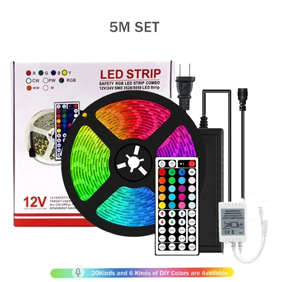 Светодиодсветильник лента 5050 с 44 кнопками, Светодиодная лента RGB SMD 5050, 12 В постоянного тока, водонепроницаемая, 5 м, 10 м, Гибкий контроллер + адаптер ЕССША