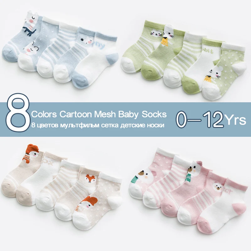 Материал: хлопковые детские носки Размер: подходит для детей 0-8 лет Узор: милый Мультяшные детские носки Пол: детские носки для мальчиков и девочек Преимущества: дышащие детские носки Особенности: детские носки из мягкой сетки Посылка: 5 пар/партия детских носков Сезон: Весна/лето/осень детские носки