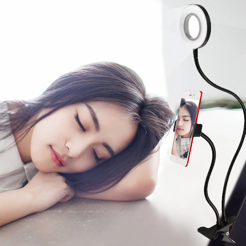 3-цветный кольцевой светильник для селфи с держателем для сотового телефона 2-в-1 держатель для сотового телефона с светодиодный светильник для телефона