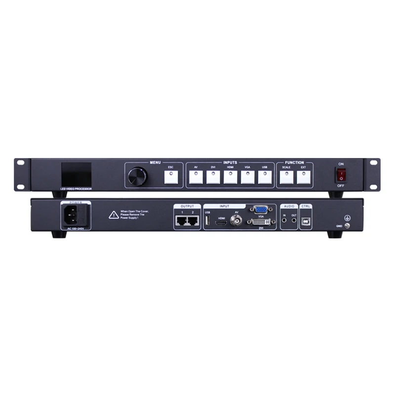 1. Несколько видеовходов-видеоконтроллер VS3 использует 5 каналов видеовхода, включая 1 Композитный видео AV (CVBS), 1 канал VGA, 1 канал DVI, 1 канал HDMI, 1 канал USB. В основном были удовлетворены потребности в гражданском и промышленном использовании. Плавное переключение всех видеовходов. 2. Поддержка выхода синхронизации звука-видеоконтроллер VS3 имеет 1 канальный аудиовход hdmiи 1 Независимый аудиовход, 2 канала выбирают один на выход, аудио и видео синхронизированный выход. 3. Гигабитный сетевой порт-диапазон видеоконтроллера VS3 составляет 1,3 миллиона пикселей, имеет 2 порта s, каждый порт до 650000 пикселей, максимальная ширина: 3840, максимальная высота: 1920; если вы используете принимающие карты других брендов, некоторые параметры могут быть ограничены. 4. Совместимые карты-HD/AMS (рекомендуется); LXY/CLT (некоторые параметры могут быть ограничены) 5. Бесшовное Переключение-видеоконтроллер VS3 также может плавно переключаться между любыми каналами переключения, в соответствии с требованиями можно выбрать любой источник входного сигнала для переключения на экране. 6. Скромность и отзыв-Пользовательские настройки видеоконтроллера VS3 с 7 группами, modecan сохраняют все пользовательские параметры настройки по умолчанию, могут достичь функции быстрого резервного копирования и отзыва полевых параметров (необходимо войти в меню включить). 7. Обнаружение сигнала-видеоконтроллер VS3 автоматически определяет, будет ли это вход или нет, когда подключены соответствующие входы, если входной сигнал текущего канала имеет, светодиодный индикатор сигнального канала является нормальным светильник а на ЖК-экране будет отображаться тип и разрешение источника; Если текущий канал не имеет сигнала или сигнала ненормально, Светодиодный индикатор сигнального канала будет мигать, ЖК-экран не показывает сигнала. 8. Функция тестирования дисплея-через интерфейс ЖК-экрана и ручку можно выбрать несколько режимов тестирования светодиодного дисплея. 9. Воспроизведение через USB-Воспроизведение видеофайлов и файлов изображений в USB-накопителе, поддержка видео в формате 720p, Совместимость с распространенными видеоформатами.