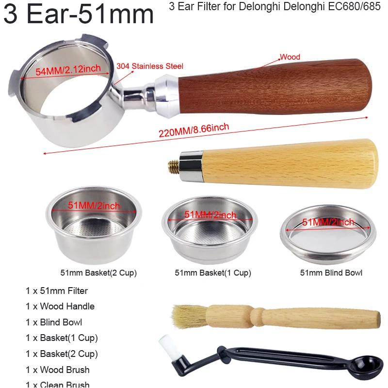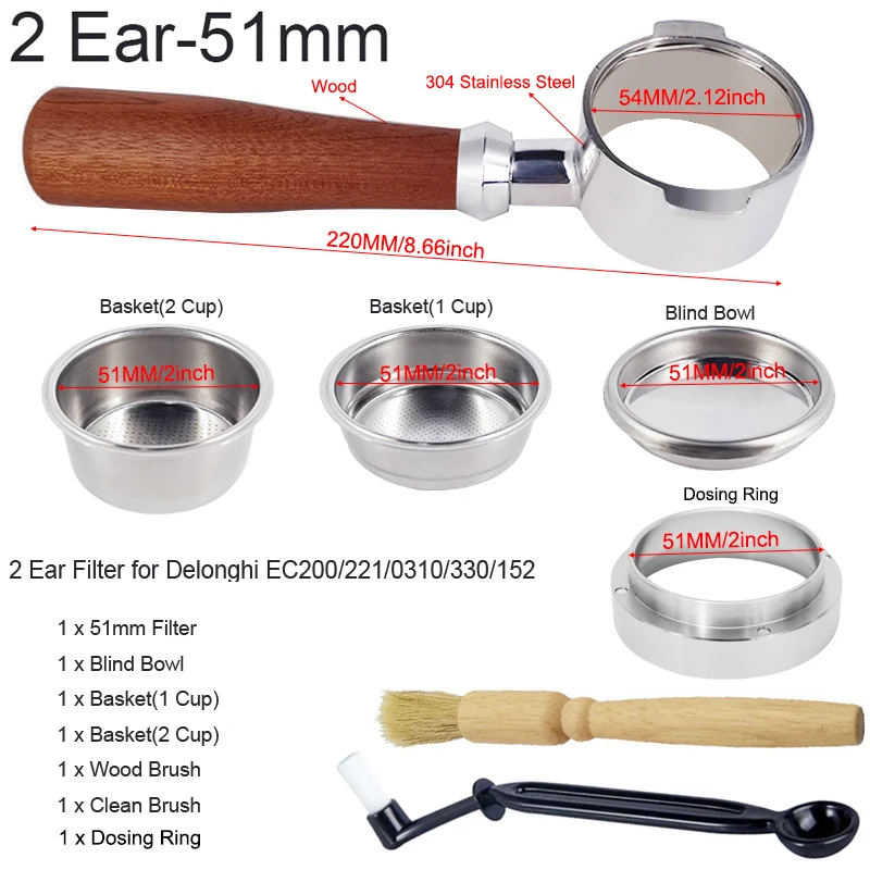 Портафильтр 51 мм, ручка для профессиональной кофемашины эспрессо, кофейные инструменты с дозирующим кольцом
