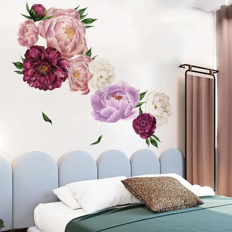 Серия пионов, настенные наклейки s для гостиной, спальни, ТВ, дивана, фона на стену, самоклеящиеся растения, настенные виниловые Стикеры, фрески