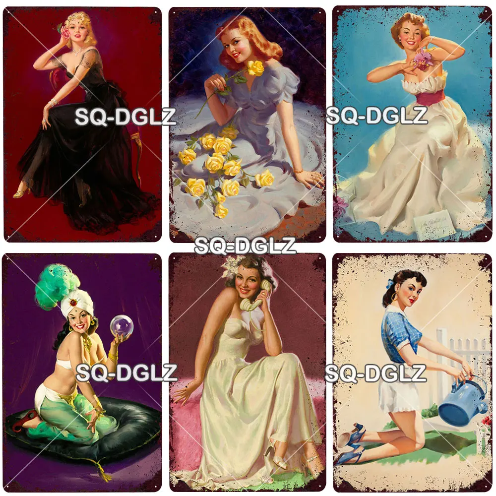 Металлическая пластина 90s Pinup, SQ-DGLZ г., винтажный декор для паба, металлический плакат для девочек, украшение для дома, искусство на заказ