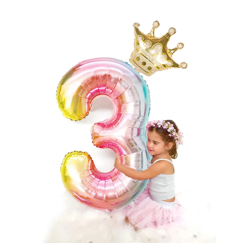 2 шт.лот 32 дюйма радужные фольгированные шары с короной 0-9 цифр в...