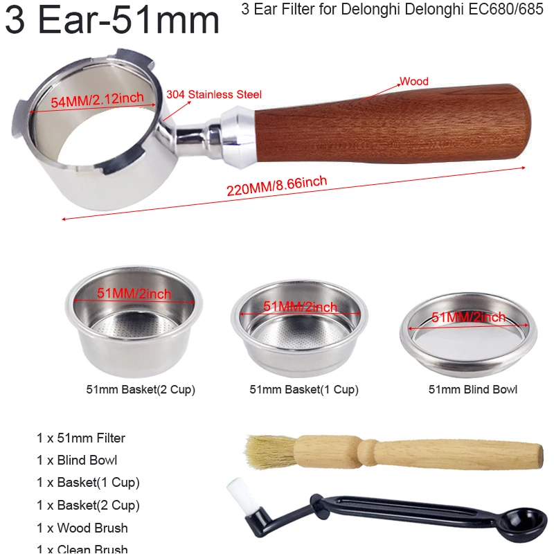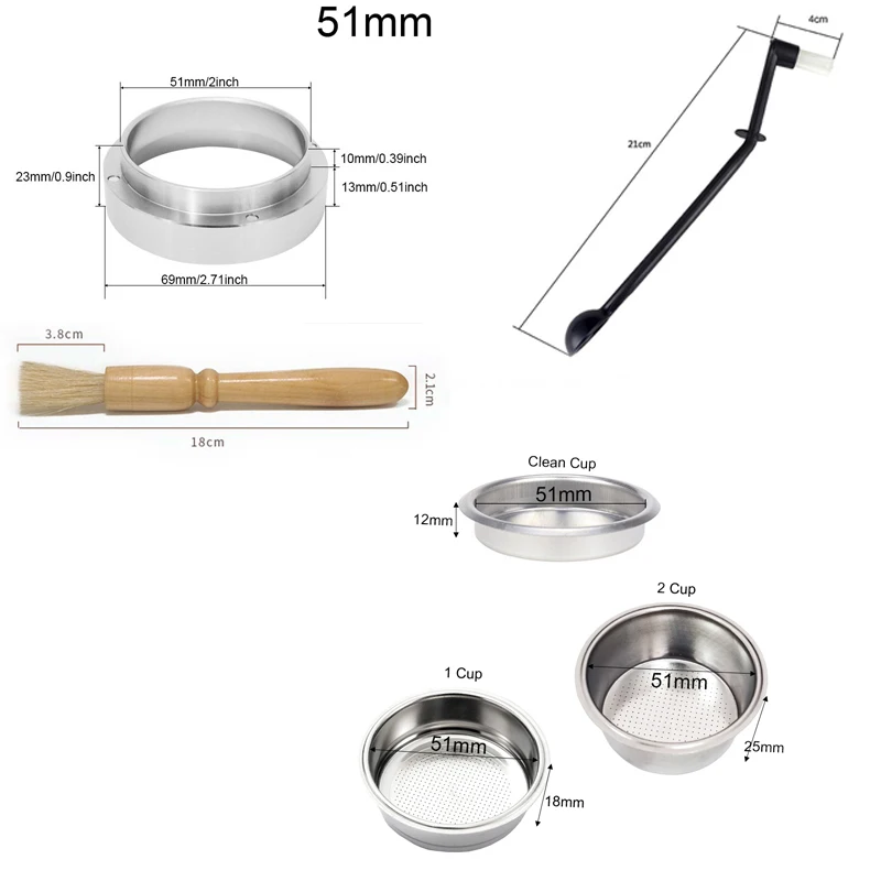 Кофейный портативный фильтр без дна 51 мм с дозирующим кольцом, 3 угла, регулируемый Темпер, 2 чашки, корзина 350 мл, кувшин для взбивания пены
