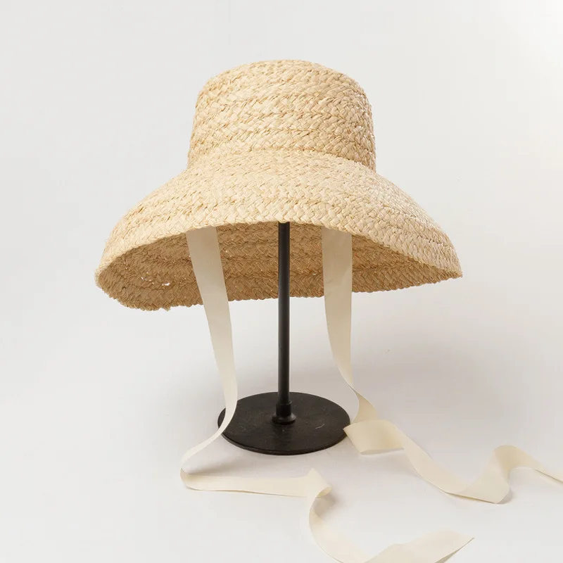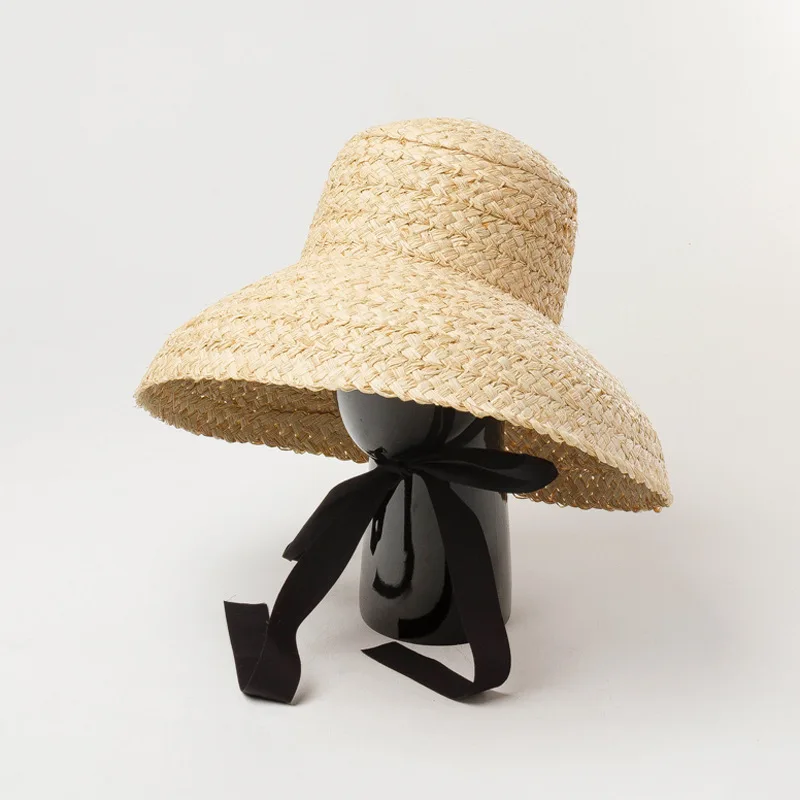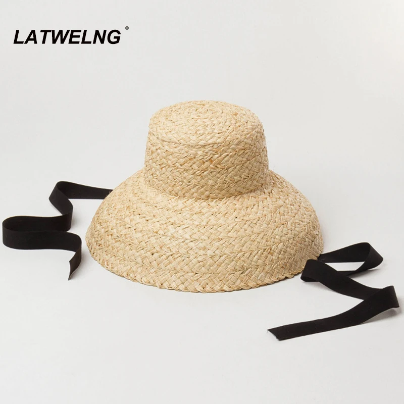 Шляпка женская из рафии с плоским верхом, модная пляжная Панама ручной работы, 1125