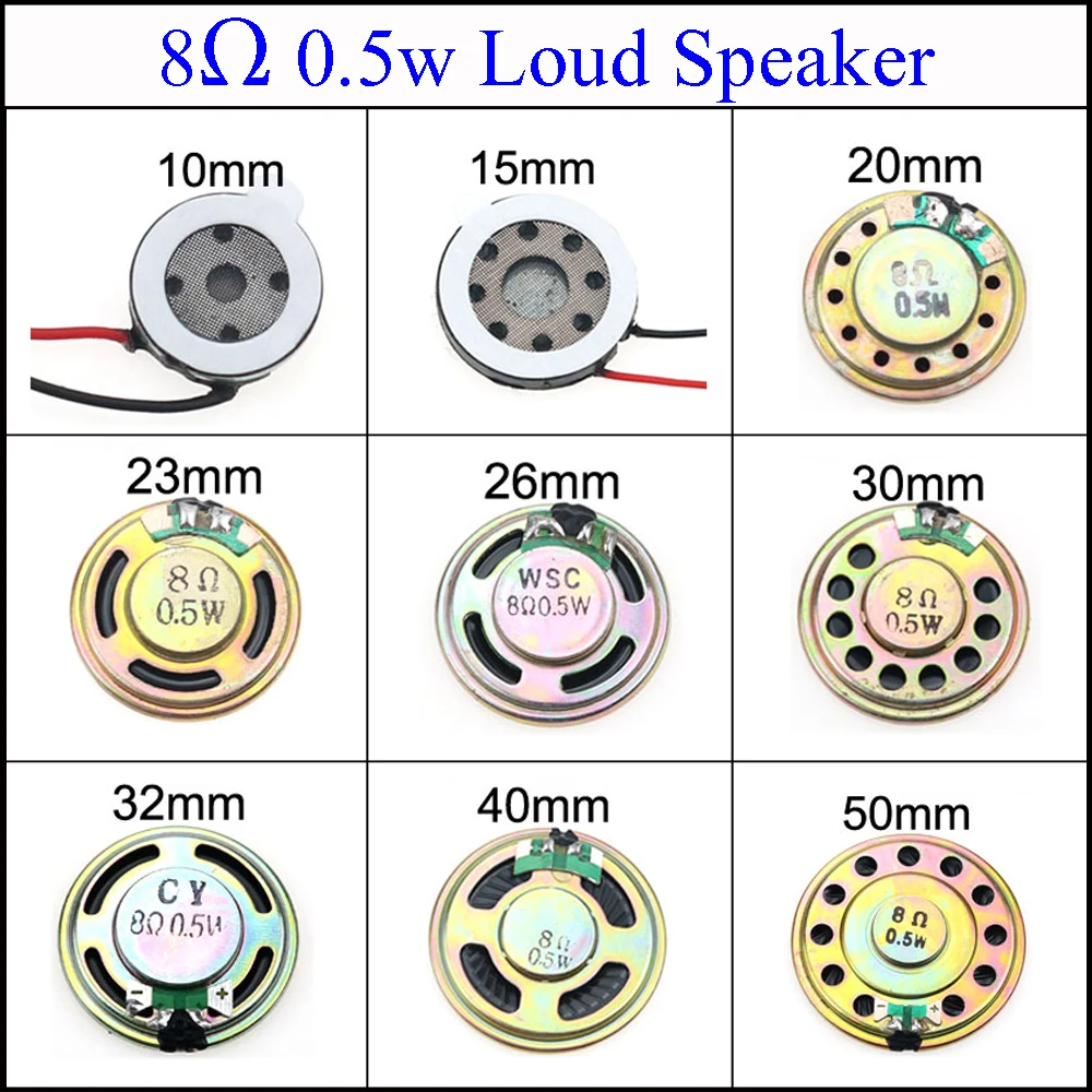 YuXi 8 Ом 0,5 Вт 10 мм 15 мм 20 мм 23 мм 26 мм 30 мм 32 мм 40 мм 50 мм диаметр громкий динамик