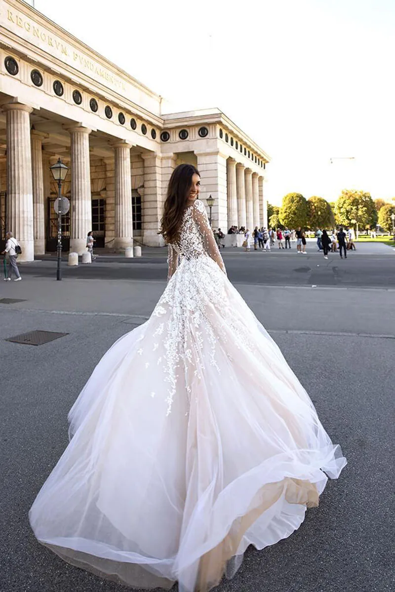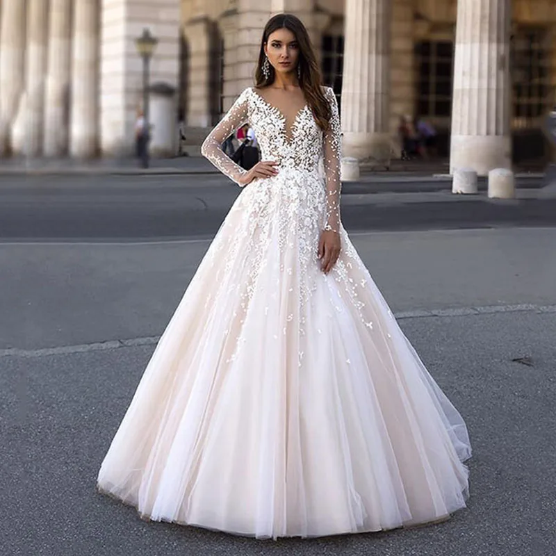 Женское свадебное платье с длинными рукавами, Кружевная аппликация ...