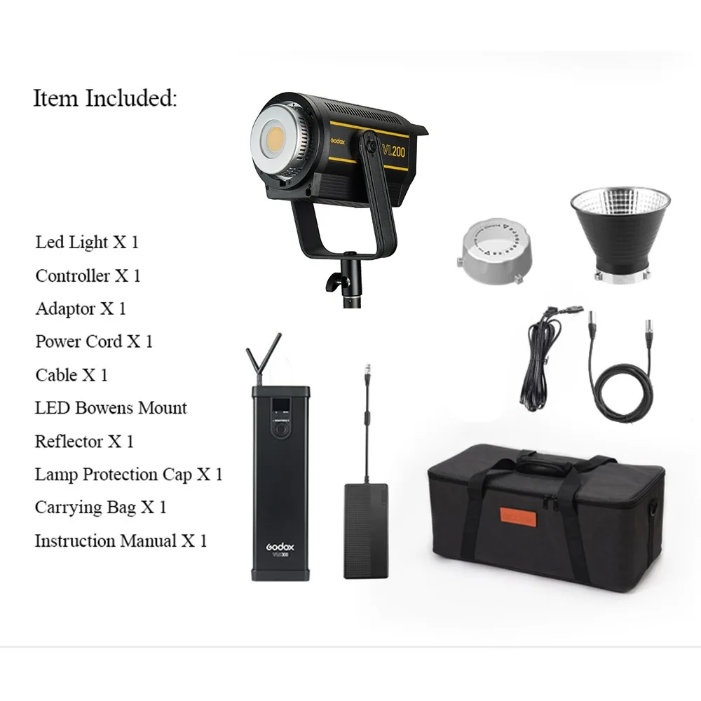 Студийный светильник Godox VL200, VL-200, 200 Вт, 5600K, белый цвет, светодиодная подсветка, непрерывный выход, поддержка приложения