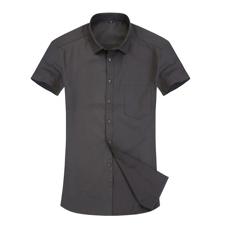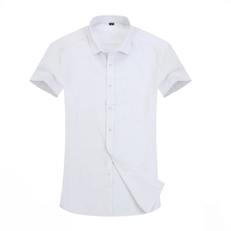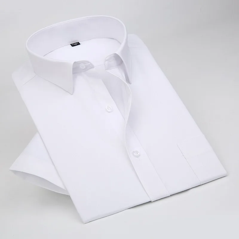 Качественная летняя мужская белая классическая рубашка с короткими рукавами и одним нагрудным карманом, приталенная деловая однотоннаяПростая рубашка из твилаоднотонная