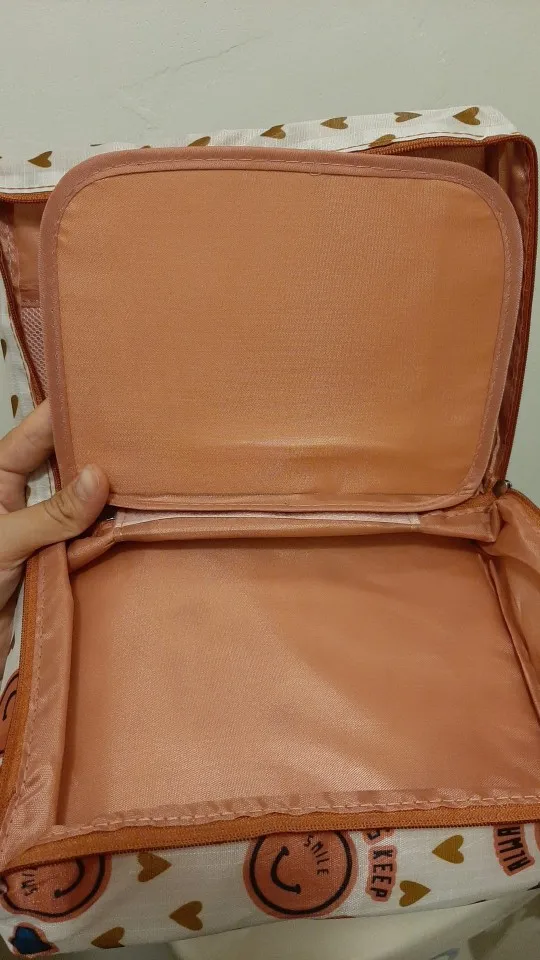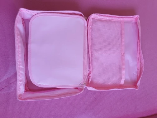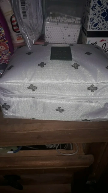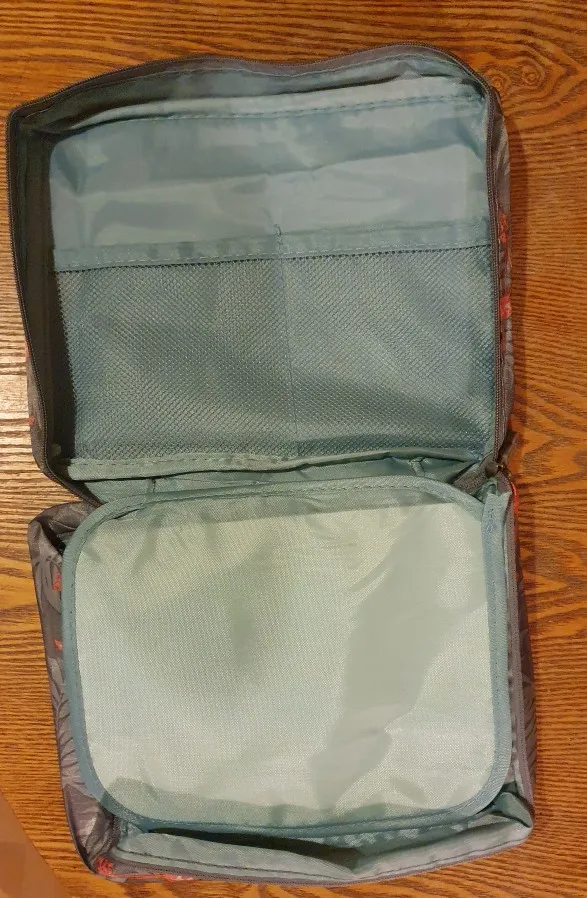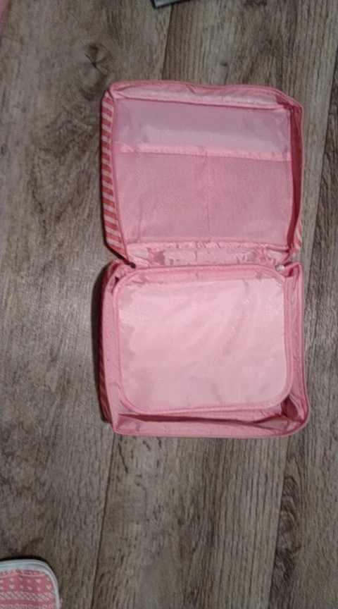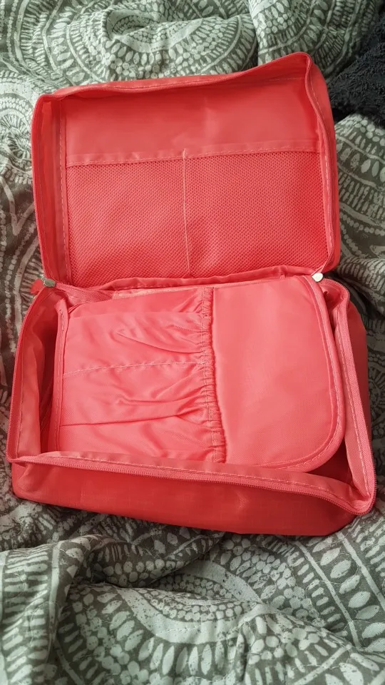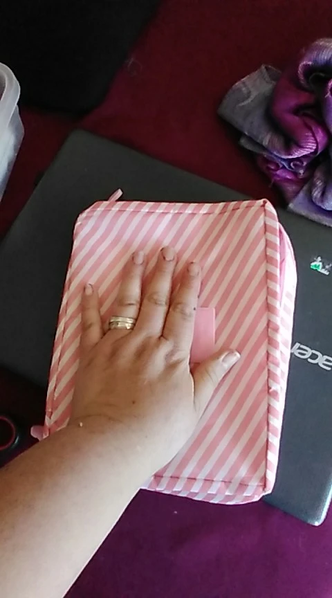 Это не очень большой, но он отлично подходит для макияжа или для ношения базовых вещей, и он не сильно прилипает к чемодану. Это очень круто и приятно на ощупь, потребовалось около 3 недель, чтобы прибыть